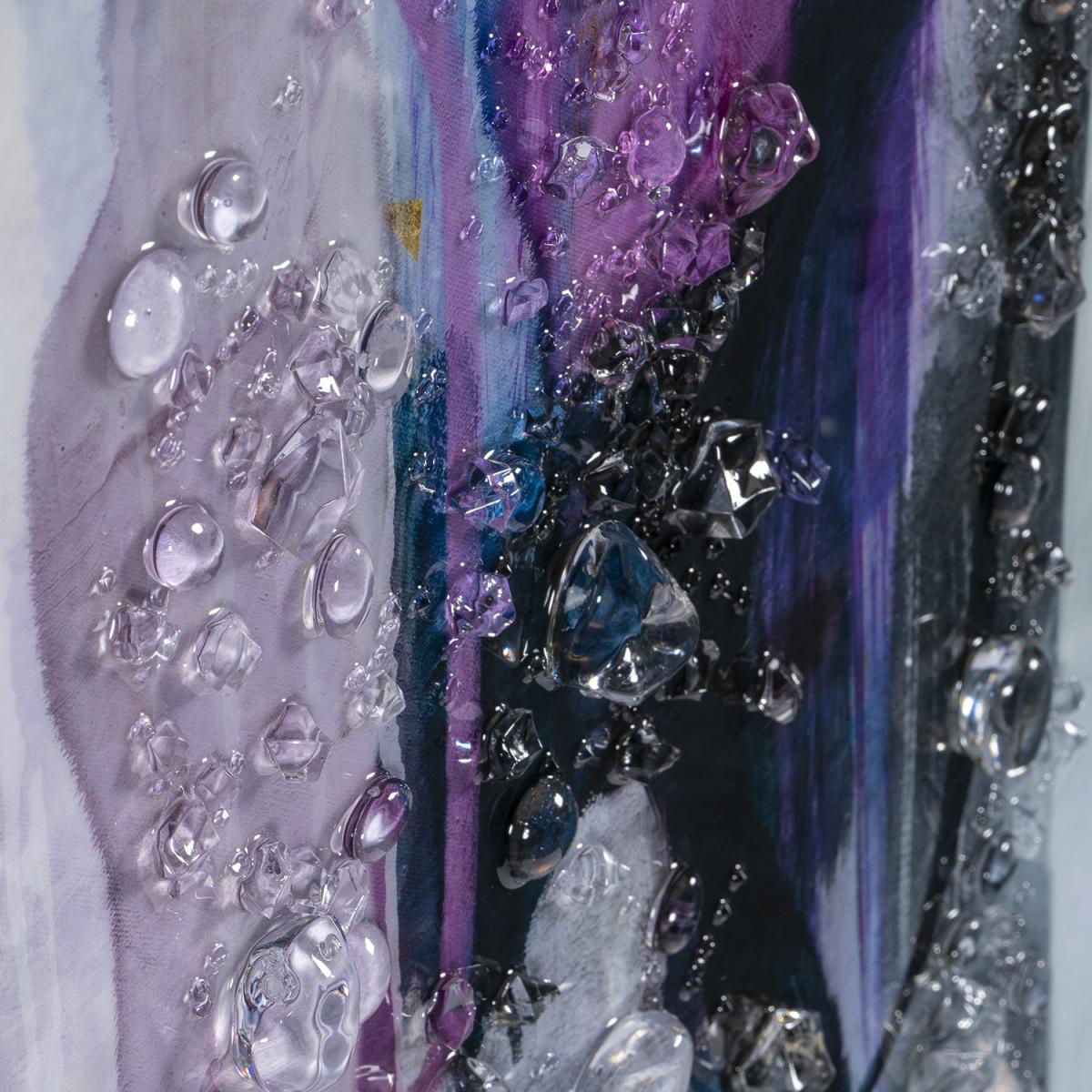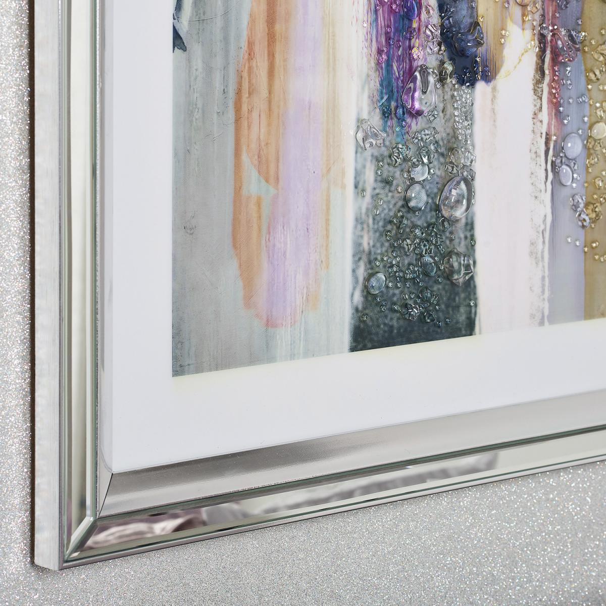 Undeniably modern, the Vibrant Abstract Modern Art catches your eye and captivates it in a mesmerising blend of purple tones and unique textures. Rain-like droplets covering the surface of this statement piece, with a white mount and silver frame to complete its contemporary aesthetic and complement any on-trend interior stylings.