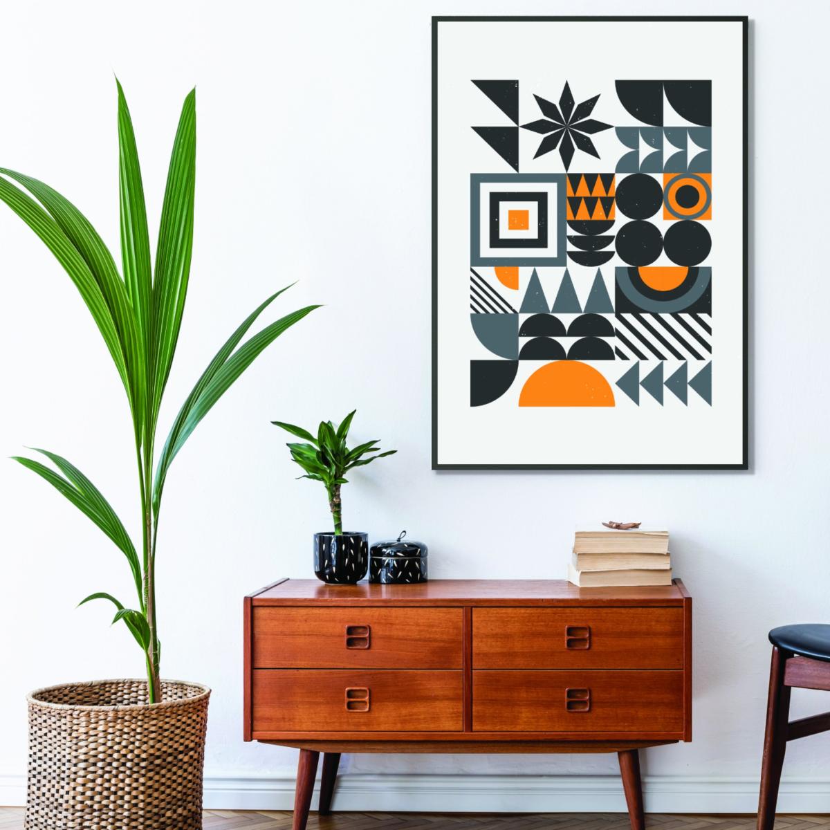 I love this small Stanley print because it captures the vibrant essence of Bauhaus design with its bold geometric shapes and striking colour palette. It works particularly well in modern or eclectic interiors, where it can serve as a focal point on a neutral wall or be styled alongside minimalist furniture to add visual interest. Practical styling tips include pairing it with simple, understated frames or creating a gallery wall with other abstract pieces. It's an excellent choice for adding a pop of colour and a touch of artistic flair to living rooms, home offices, or even bedrooms.