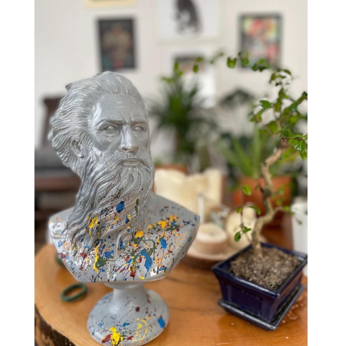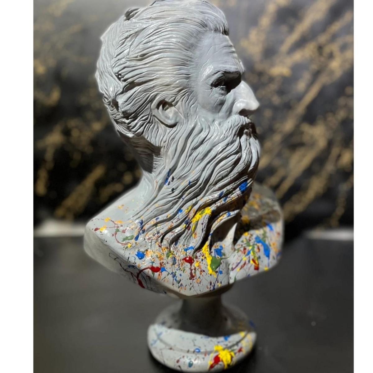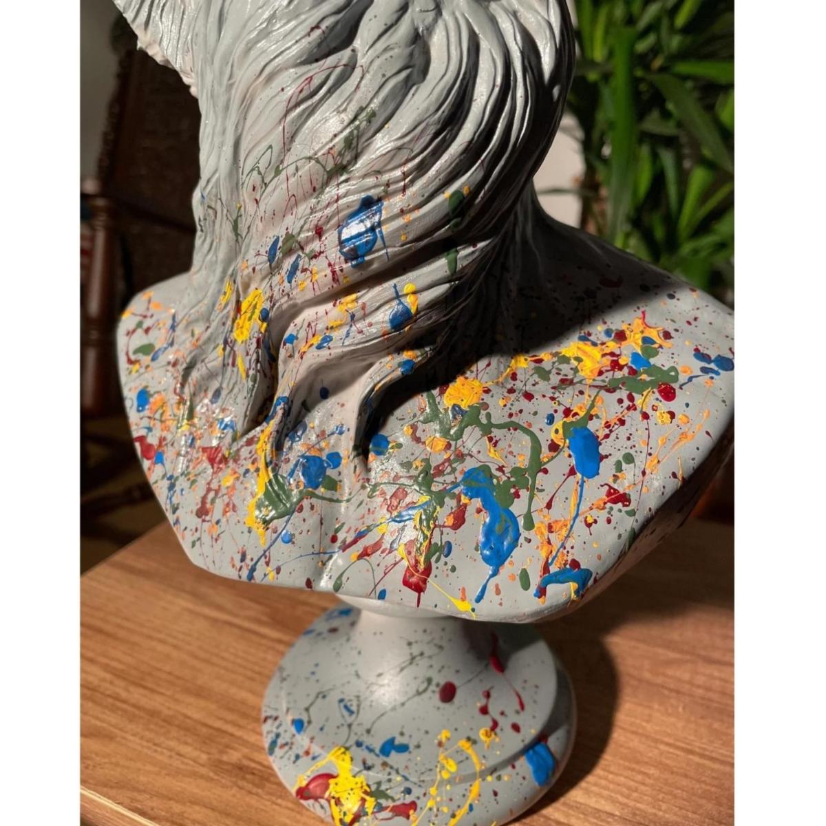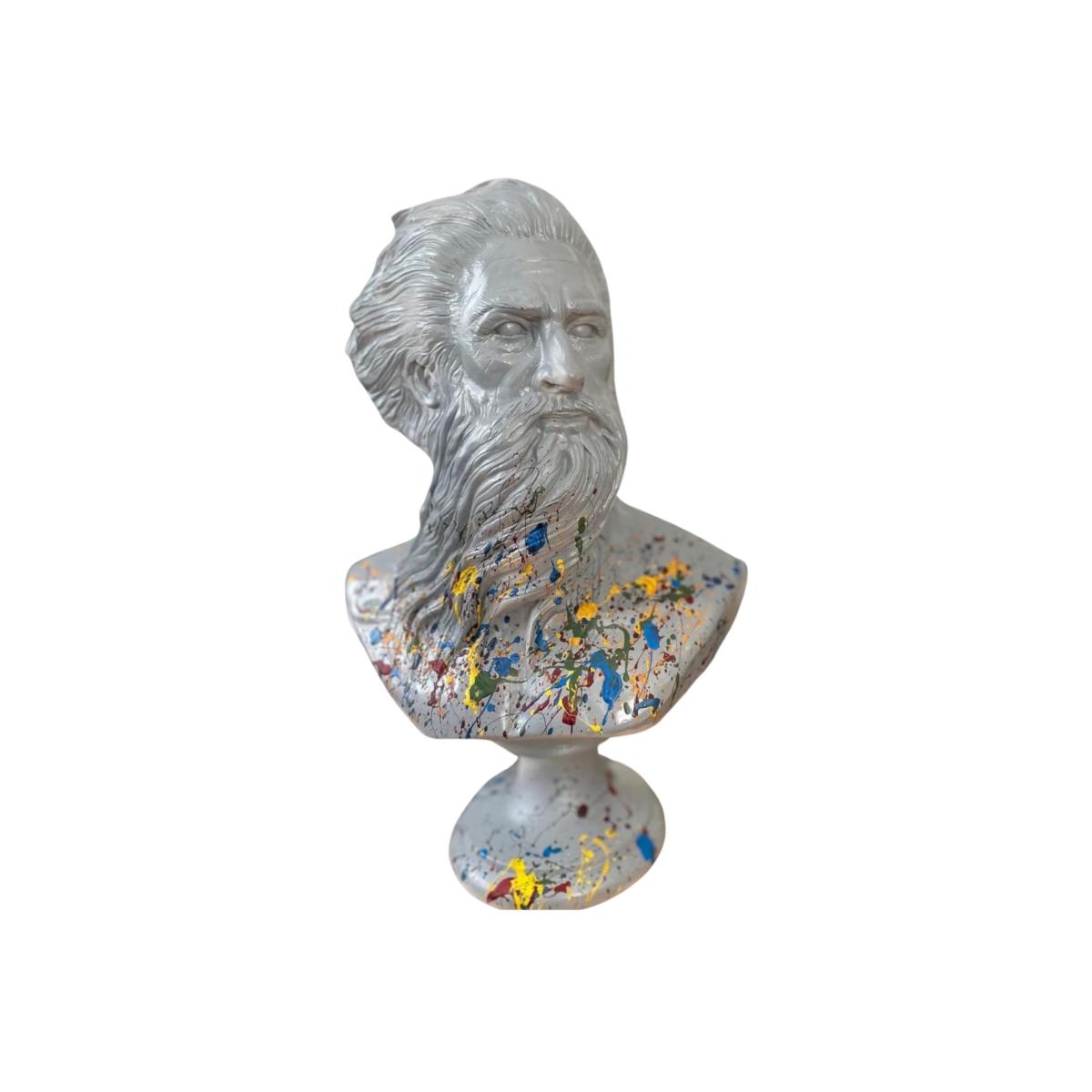 "Vibrant Poseidon" is a captivating 36 x 20 cm sculpture that brings the mythical god of the sea to life with a contemporary twist. Cast in light grey, this large sculpture is meticulously detailed, capturing Poseidon's majestic presence. The vivid colors splashed across the figure create a dynamic contrast, symbolizing the untamed energy of the ocean. This unique blend of classical mythology with modern art makes "Vibrant Poseidon" a standout piece, perfect for adding a touch of bold elegance to your home or office. Ideal for collectors and those who appreciate mythological figures reimagined in a fresh, artistic style. Gently dust your sculpture with a soft, dry cloth or a feather duster.