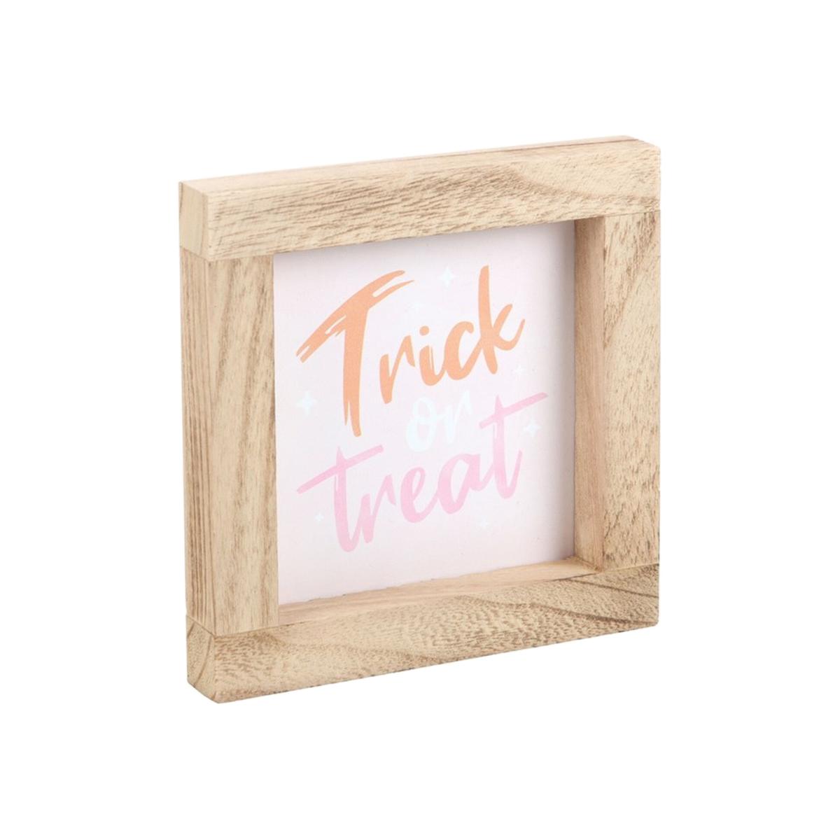 Vibrant Trick Or Treat Wooden Frame Sign - Pink