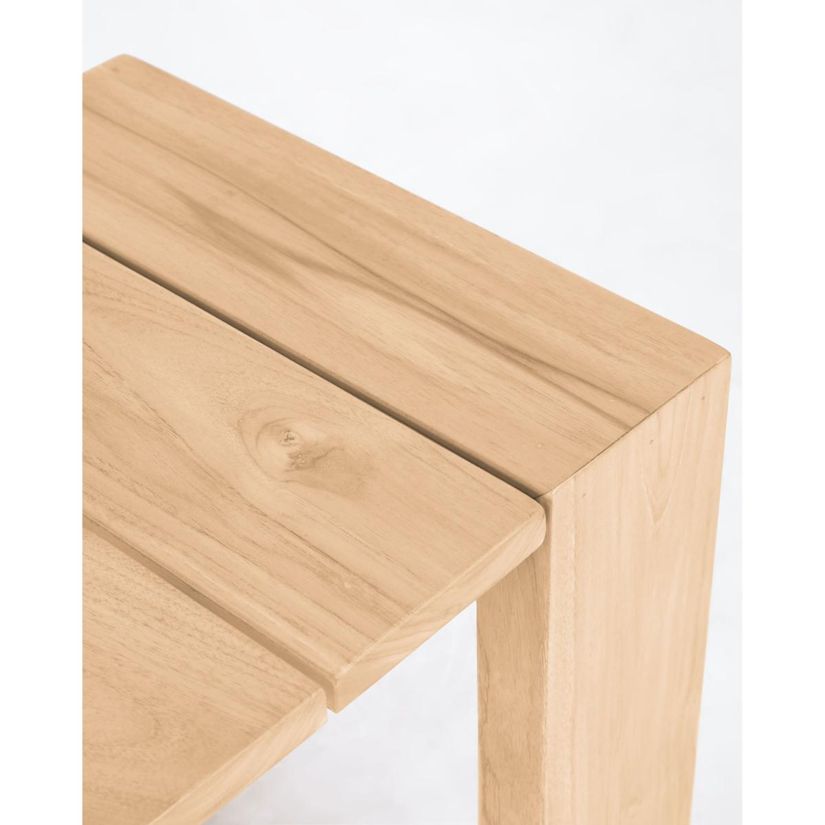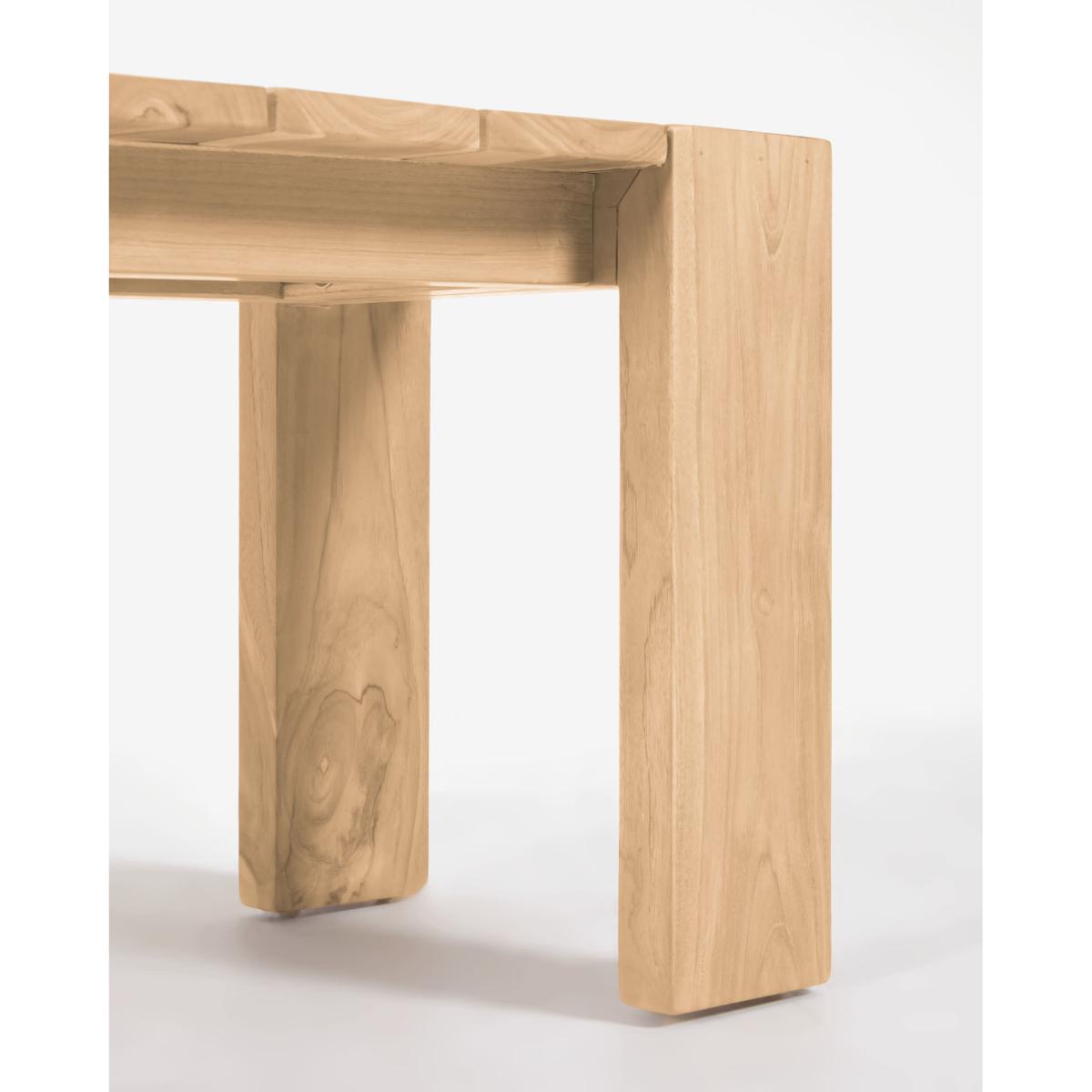 I love this bench’s clean, minimalist design, which makes it versatile for a variety of outdoor settings. Its solid teak construction ensures durability and weather resistance, making it an ideal piece for relaxed garden lounges or patios. It works particularly well in Scandi-inspired or contemporary outdoor schemes, where natural materials and simple lines are key. Practical styling tips include pairing it with cushions for added comfort, or mixing with plump outdoor sofas and potted greenery for a layered, inviting feel. Keep the look understated and let the natural beauty of the wood shine through-it's a practical yet stylish addition to any outdoor space.