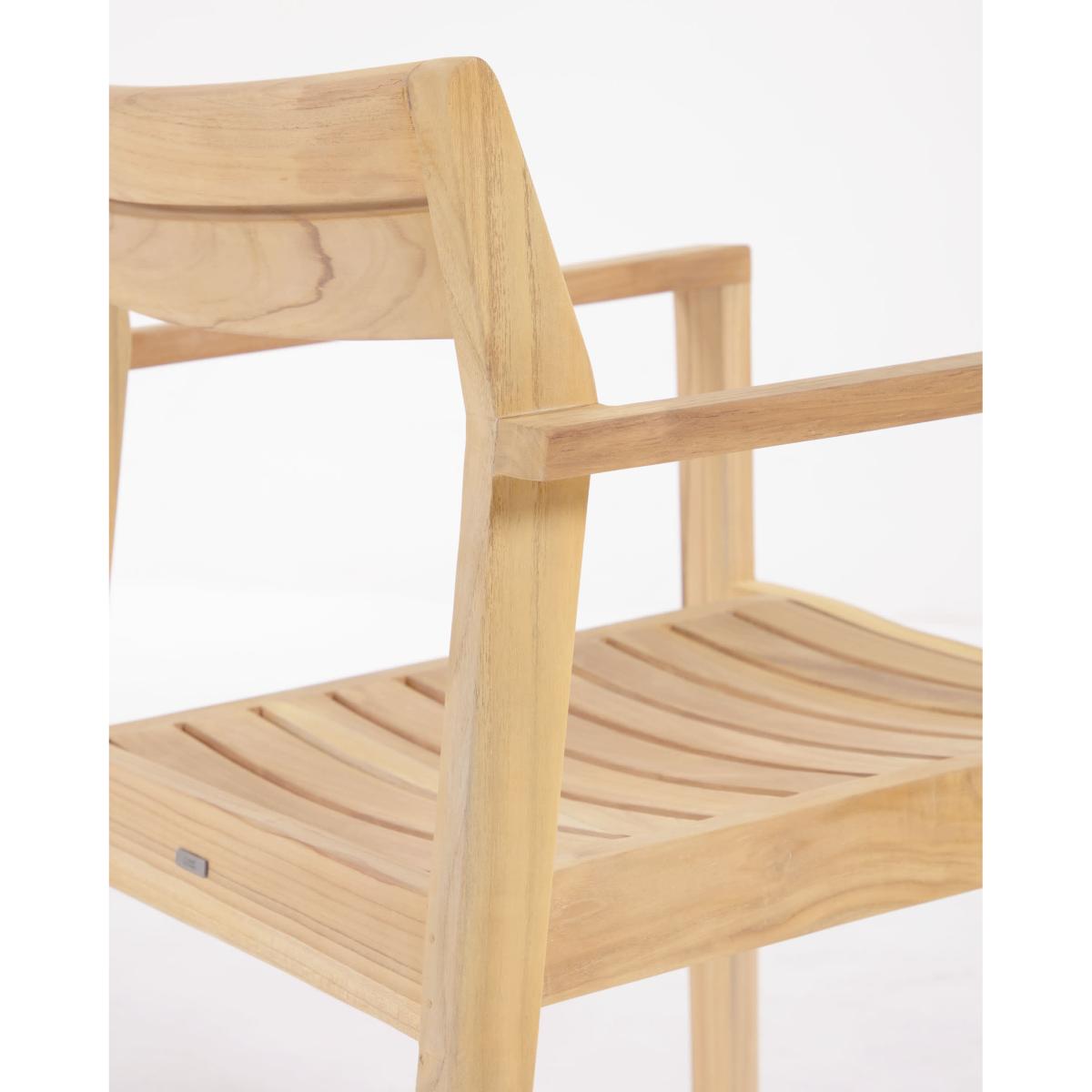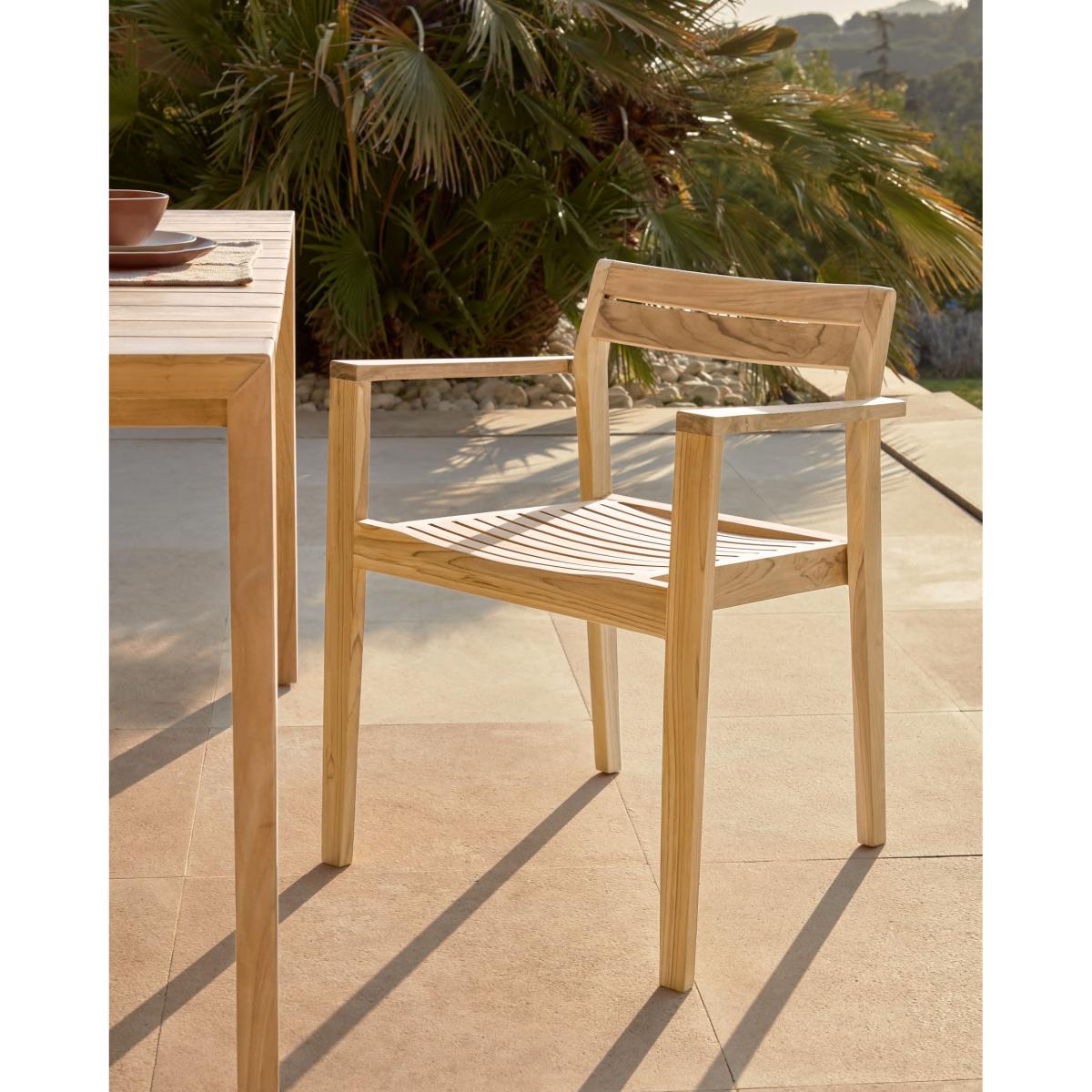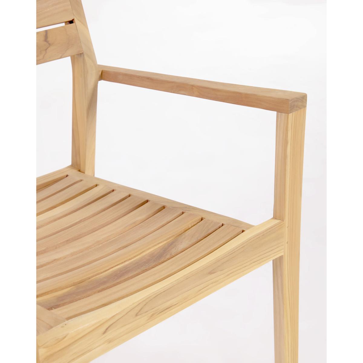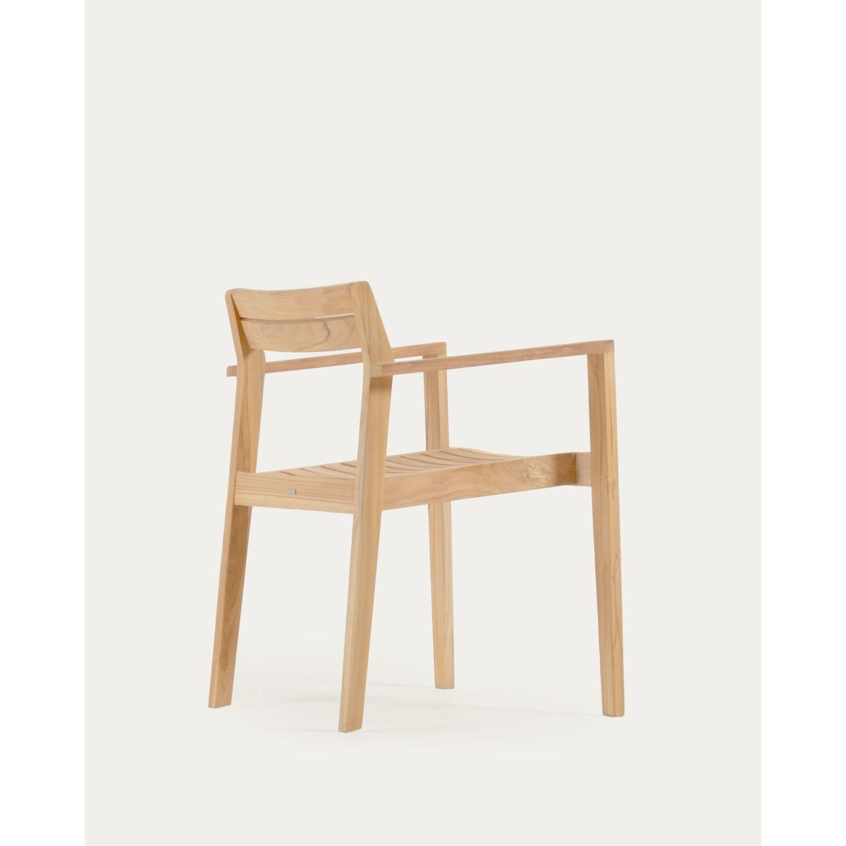 I love this stackable teak outdoor chair for its clean lines and natural finish, which bring a fresh, timeless appeal to any garden or patio setting. Its solid teak construction ensures durability against the elements while maintaining a sleek profile. This piece works well in both contemporary and rustic outdoor spaces, and its stackable feature makes it practical for versatile use and easy storage. For styling, pair it with neutral-toned cushions or add colourful outdoor accessories for a pop of colour. It also pairs nicely with natural materials like rattan or woven textiles, creating a cohesive, laid-back outdoor aesthetic.