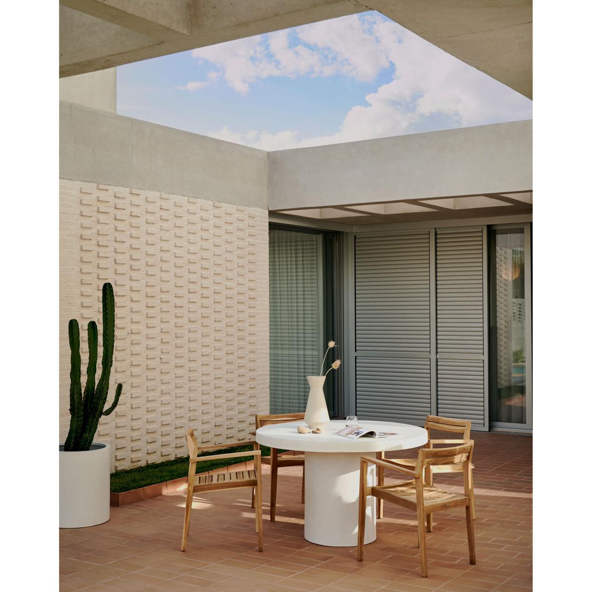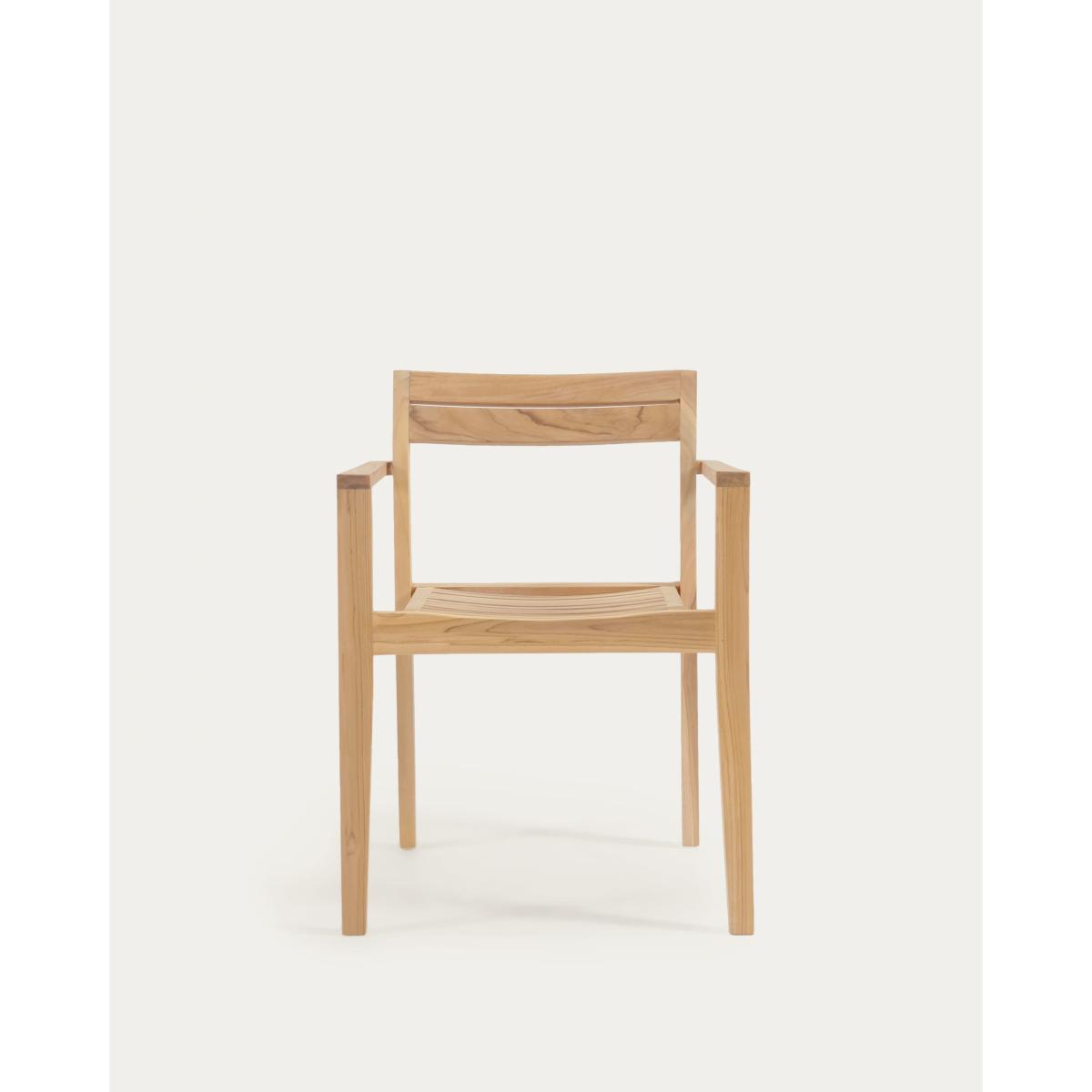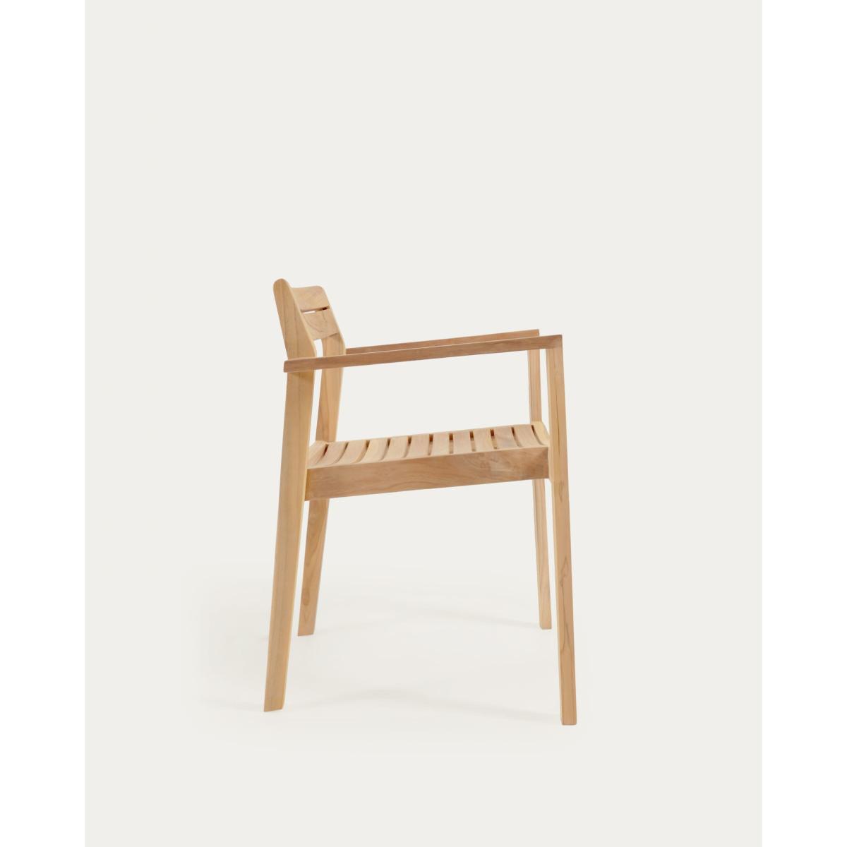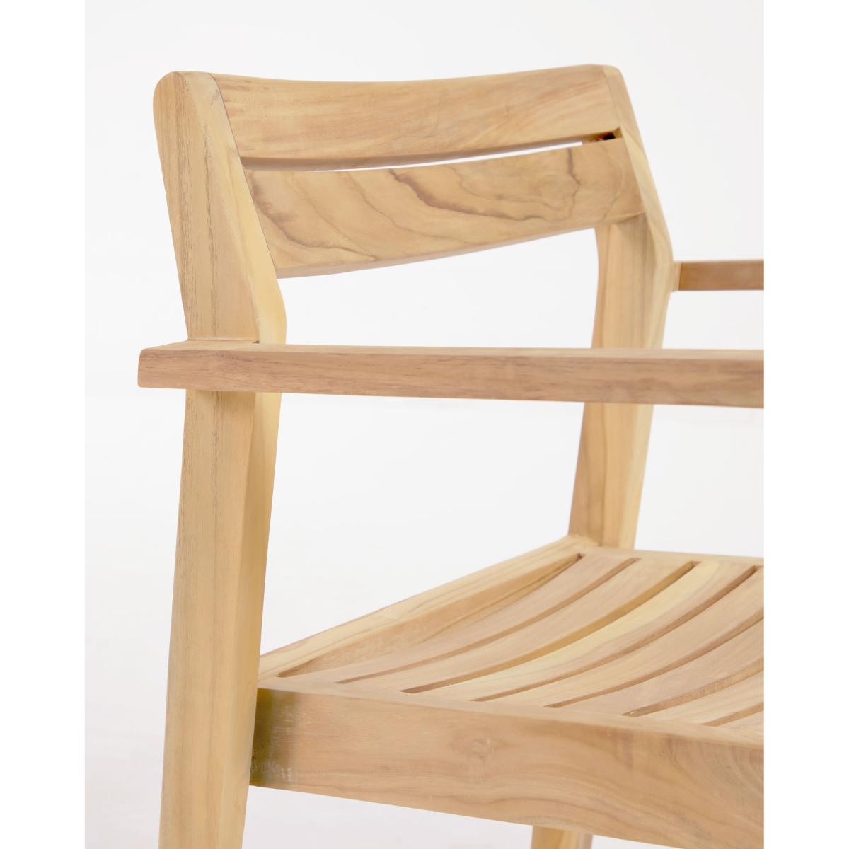 I love this stackable teak outdoor chair for its clean lines and natural finish, which bring a fresh, timeless appeal to any garden or patio setting. Its solid teak construction ensures durability against the elements while maintaining a sleek profile. This piece works well in both contemporary and rustic outdoor spaces, and its stackable feature makes it practical for versatile use and easy storage. For styling, pair it with neutral-toned cushions or add colourful outdoor accessories for a pop of colour. It also pairs nicely with natural materials like rattan or woven textiles, creating a cohesive, laid-back outdoor aesthetic.