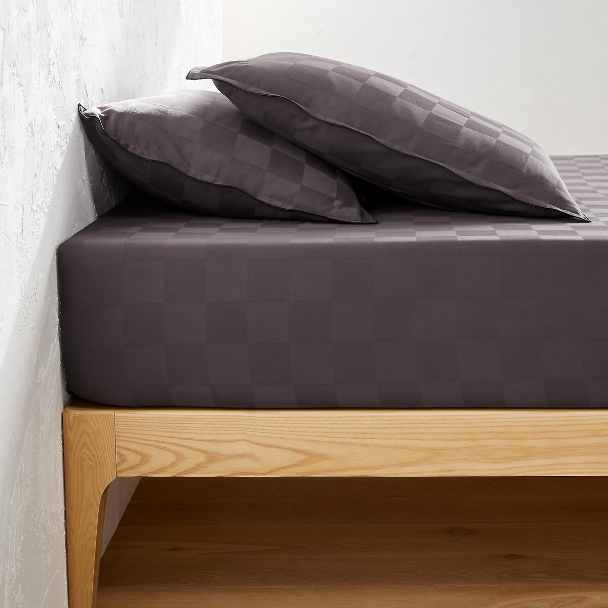 This washed cotton satin bed linen comes in a palette of neutral colours. It has a tone-on-tone checkered pattern, elegant and fashionable. Cotton with an ultra-tight weave, washed cotton satin has a silky feel. It is washed for a more matte look than classic satin. Product Details • 100% cotton • Washed cotton satin • 300 Thread Count: The higher the thread count, the higher the quality of the weave • Tonal checkered pattern • Flap height 30cm for thick mattresses • 4 elasticated corners Care Advice • Machine washable at 60°C • By washing your laundry at 40°C instead of 60°C, you limit energy consumptionDimensions • 9. 0 x 190cm: Single • 140 x 190cm: King • 160 x 200cm: King • 180 x 200cm: King • OEKO-TEX® Standard 100. Standard 100 certification by OEKO-TEX® tests textile products for harmful substances via an independent, international label.