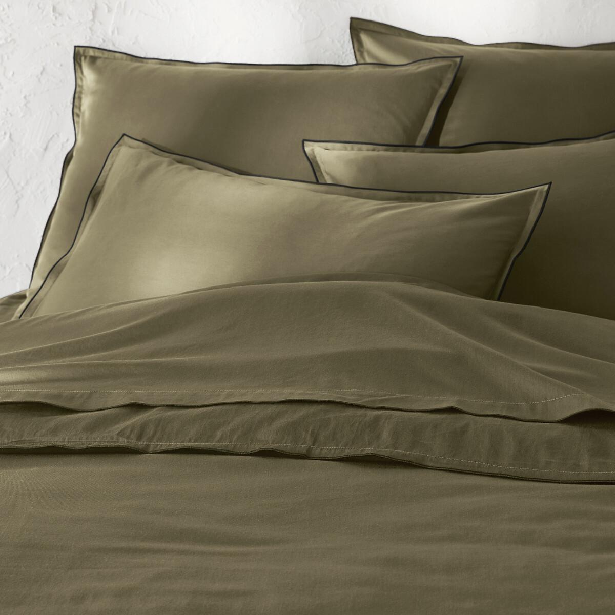 This washed cotton satin bed linen comes in a palette of neutral colours. Its plain colours make it easy to renew the decor of your room.