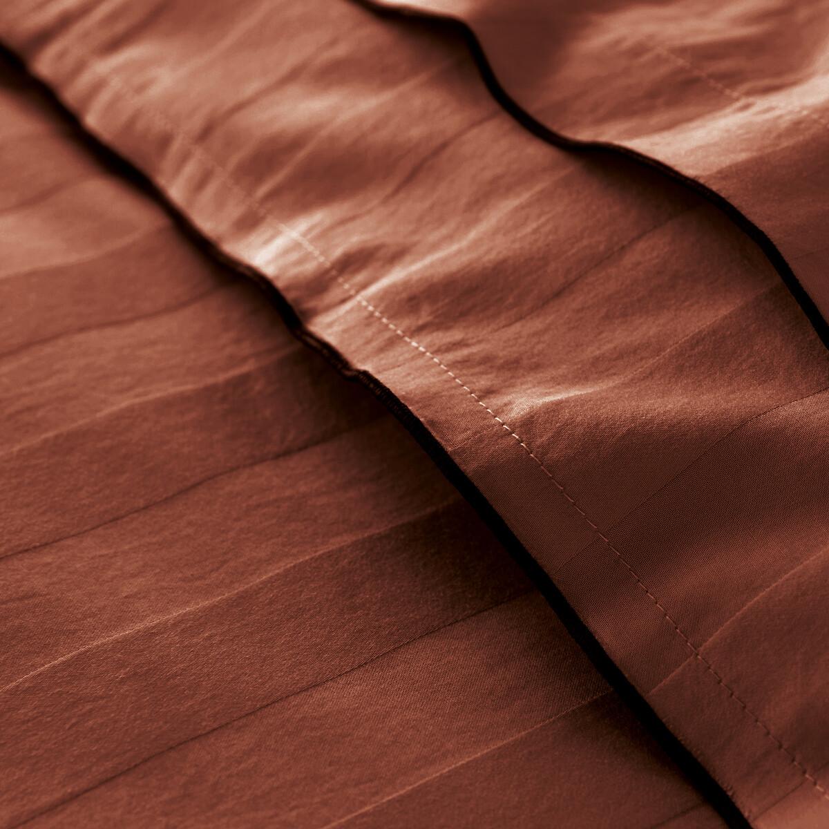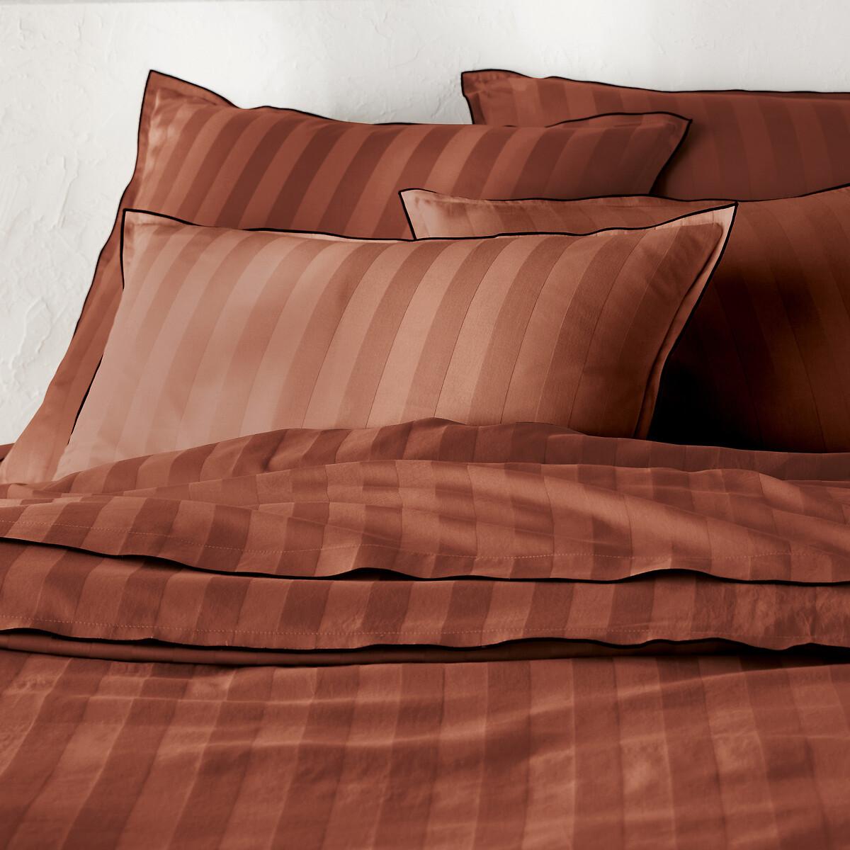 I really like the Victor striped duvet cover for its versatile, understated style and luxurious feel. The 100% washed cotton satin with a 300 thread count offers a silky touch that elevates the bedroom look without feeling overly formal, making it suitable for both contemporary and more classic interiors. Its warm, earthy tones work well in neutral or minimalist schemes, adding a touch of richness. Practical styling tips include pairing it with crisp linens or contrasting textures like chunky knits or faux fur throws for texture and visual interest. To keep it looking its best, incorporate simple, streamlined accessories and consider layering with patterned cushions or throws in complementary shades to add depth without overwhelming the clean, sophisticated aesthetic.