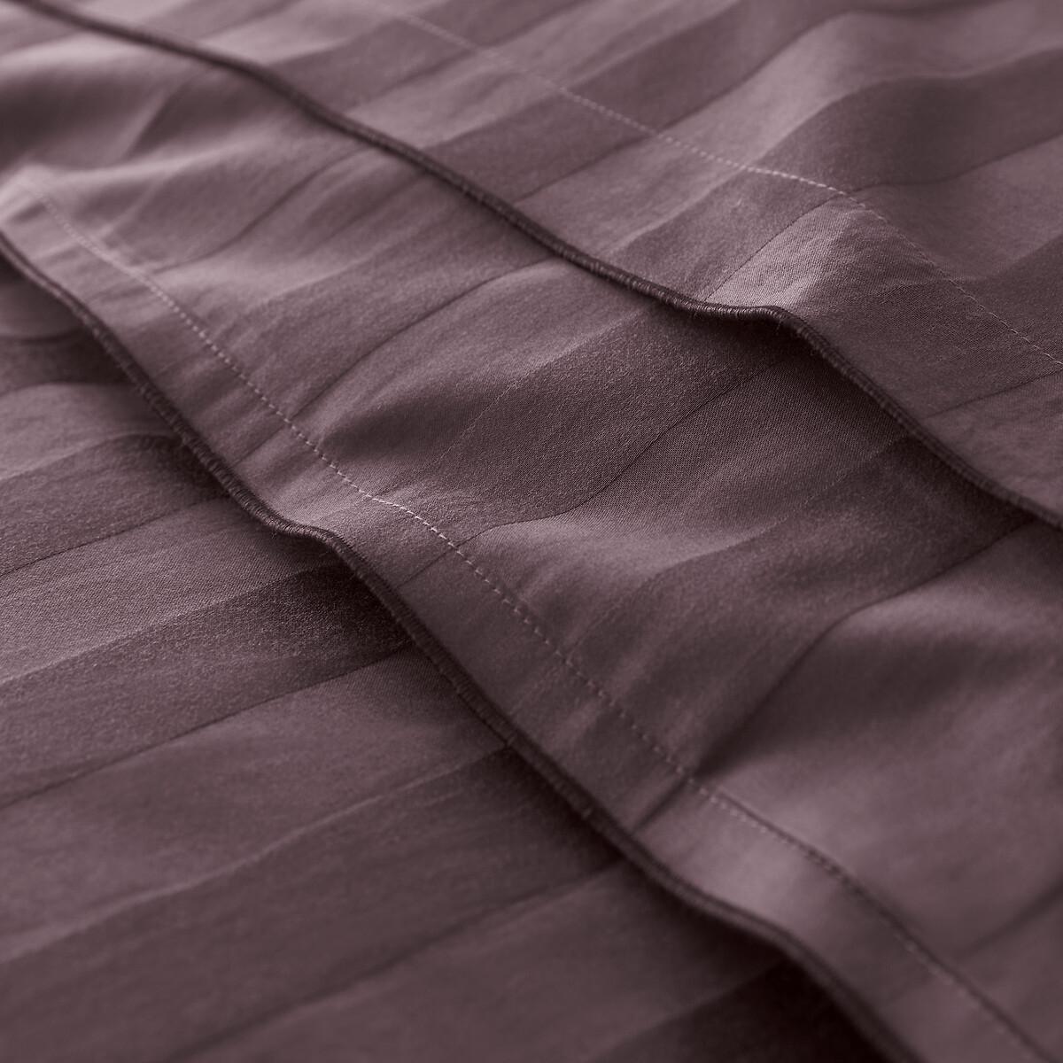 The Victor striped flat sheet is a versatile choice that works well in contemporary and minimalist interiors, thanks to its clean stripes and subtle sheen. I appreciate its 100% washed cotton satin finish, which offers a silky, smooth feel that’s both comfortable and stylish. It pairs effortlessly with neutral colour schemes but can also serve as a understated layer in bolder setups. Practical styling tips include layering with plain or textured bed linens to add depth, or pairing it with darker bedding for a sophisticated look. Its 300 thread count strikes a balance between durability and softness, making it suitable for everyday use while maintaining a polished appearance.