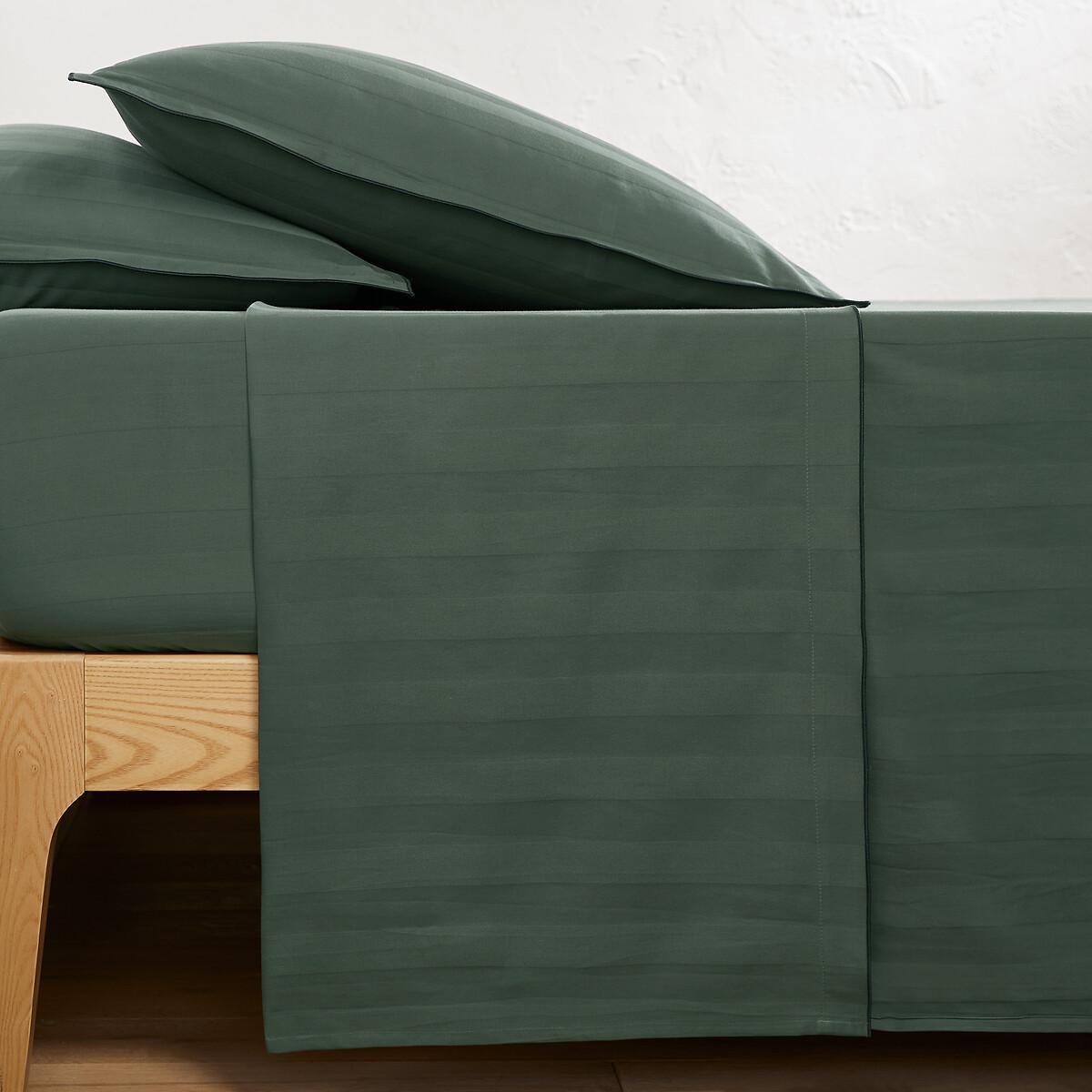 Victor Striped 100% Washed Cotton Satin 300 Thread Count Flat Sheet