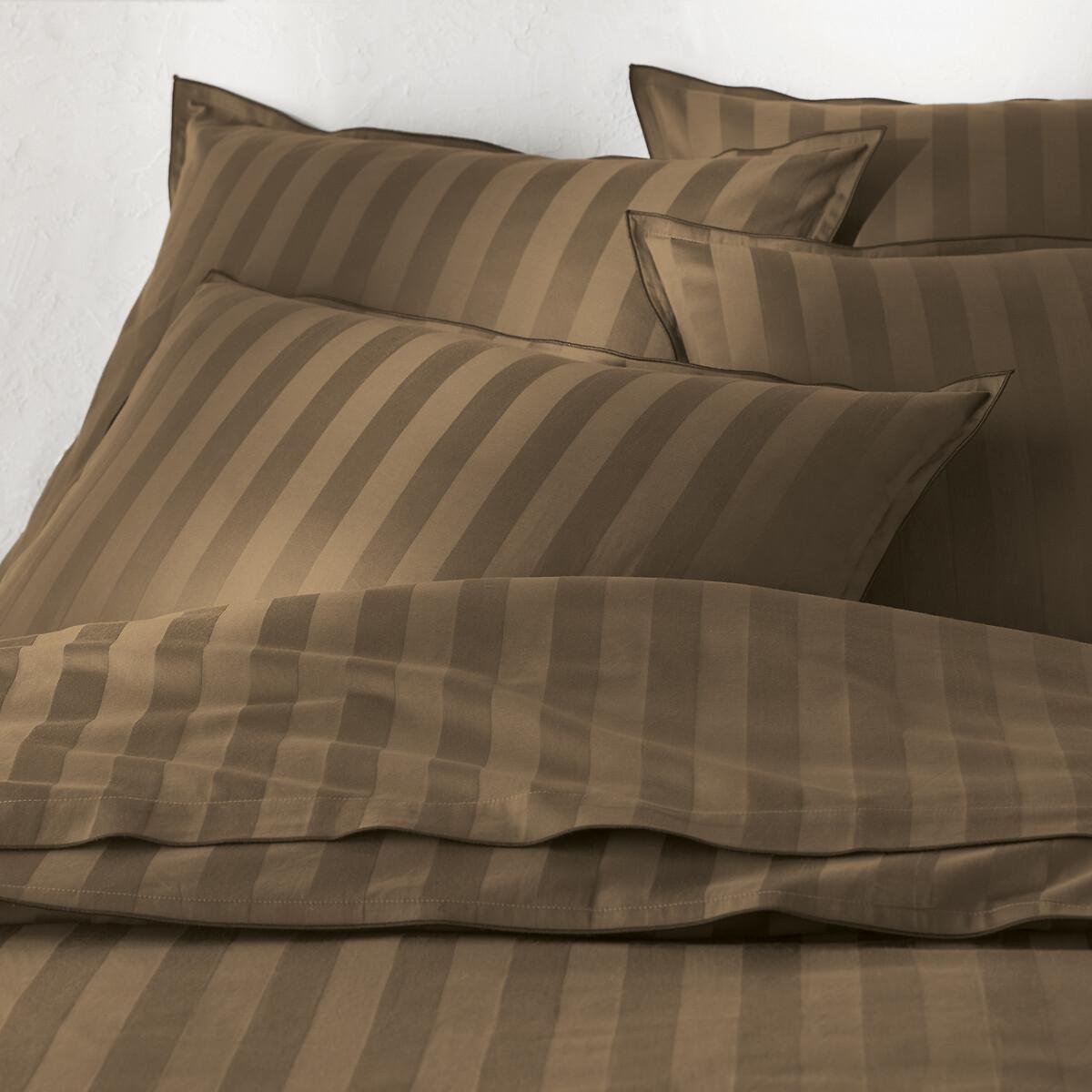 This washed cotton satin bed linen comes in a palette of neutral colours. It adopts a tone-on-tone striped pattern, chic and timeless.