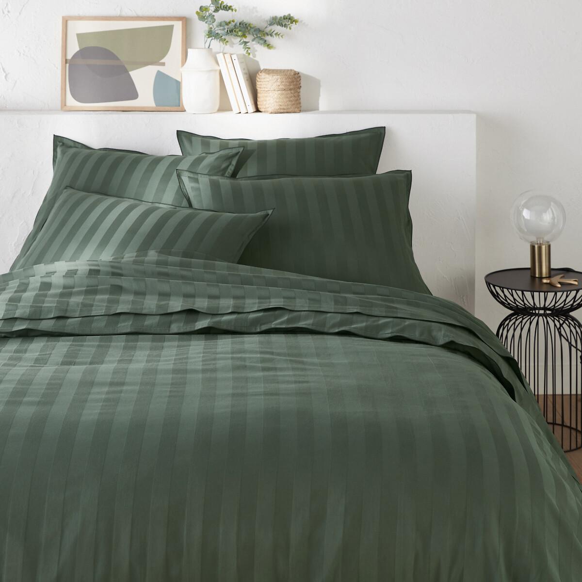 This washed cotton satin bed linen comes in a palette of neutral colours. It adopts a tone-on-tone striped pattern, chic and timeless.