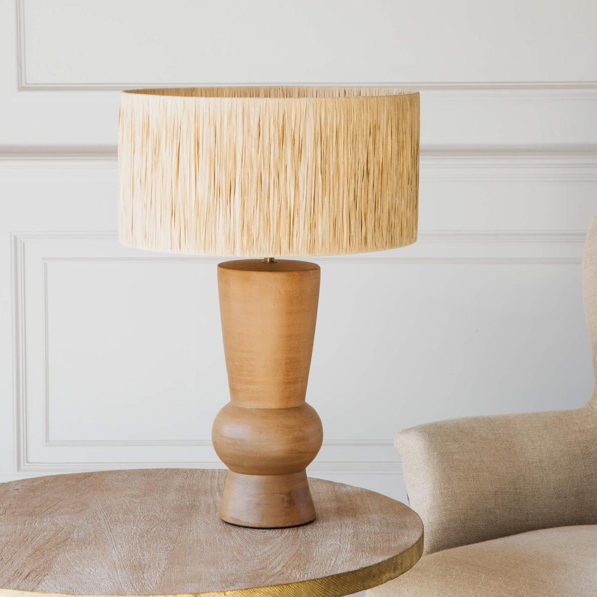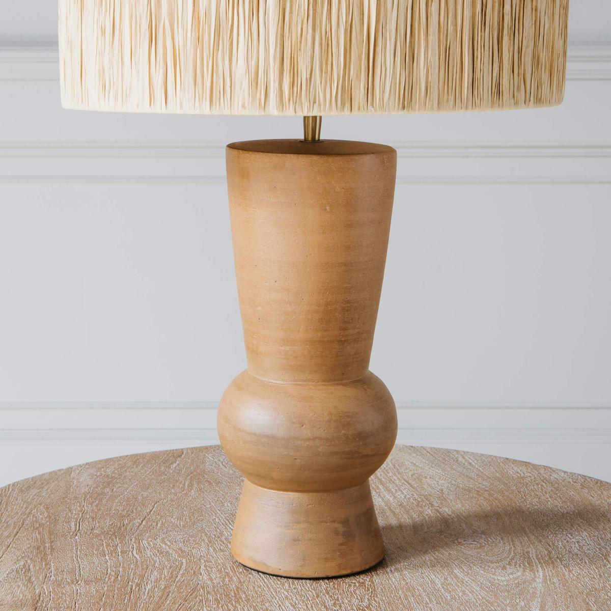 A sculptural terracotta table lamp. Pair with a natural raffia shade for stylish contemporary lighting.