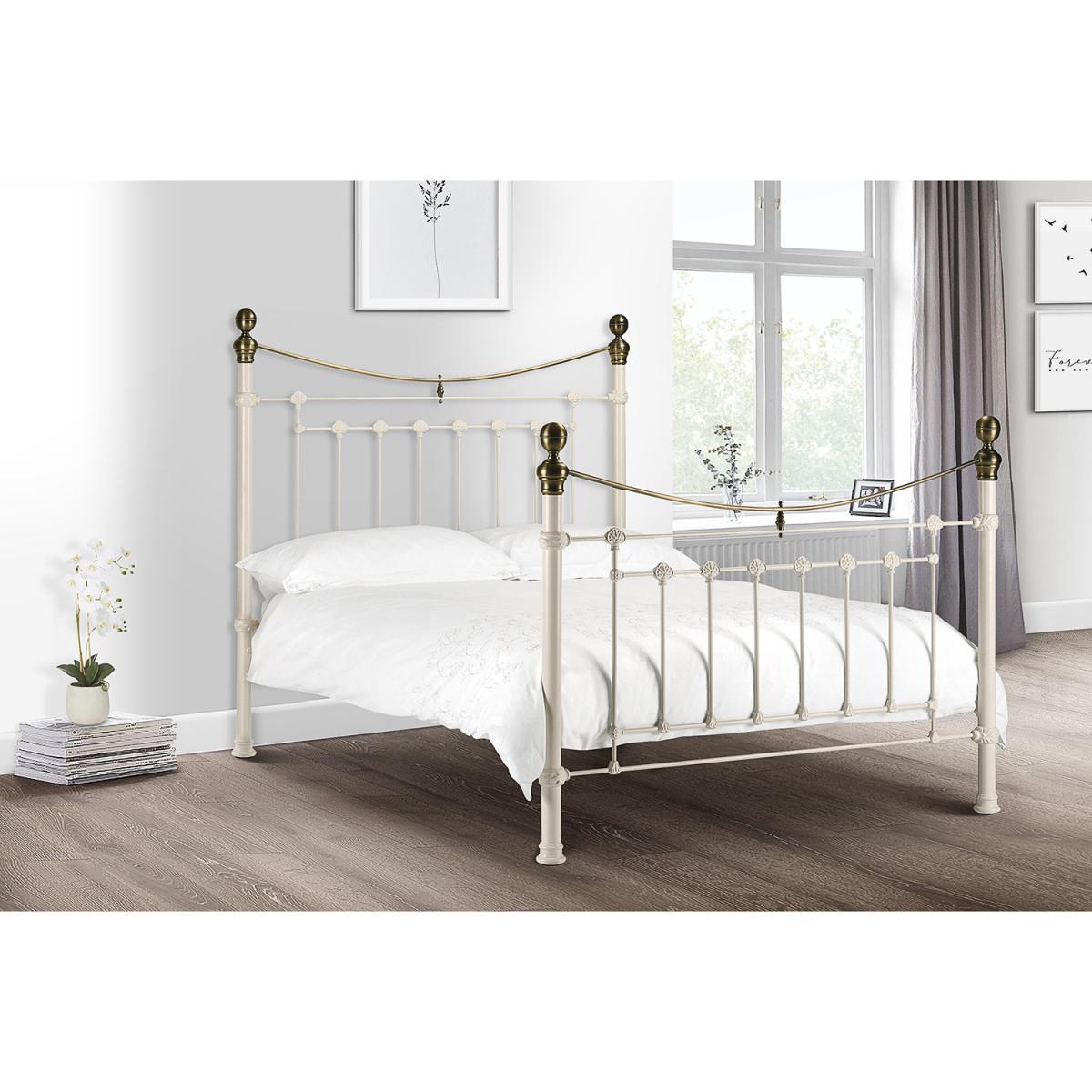 The Julian Bowen Victoria Bed is beautifully crafted with your comfort in mind. The headboard and footboard is wonderfully designed with vintage styled bars and brass finials to finish off each regal post. This bed provides you with a sprung slatted base that will support your mattress and adjust to where pressure is most applied, so you can enjoy an uninterrupted night's sleep. This gorgeous, classic bed is a must-have for any lovers of vintage furniture.