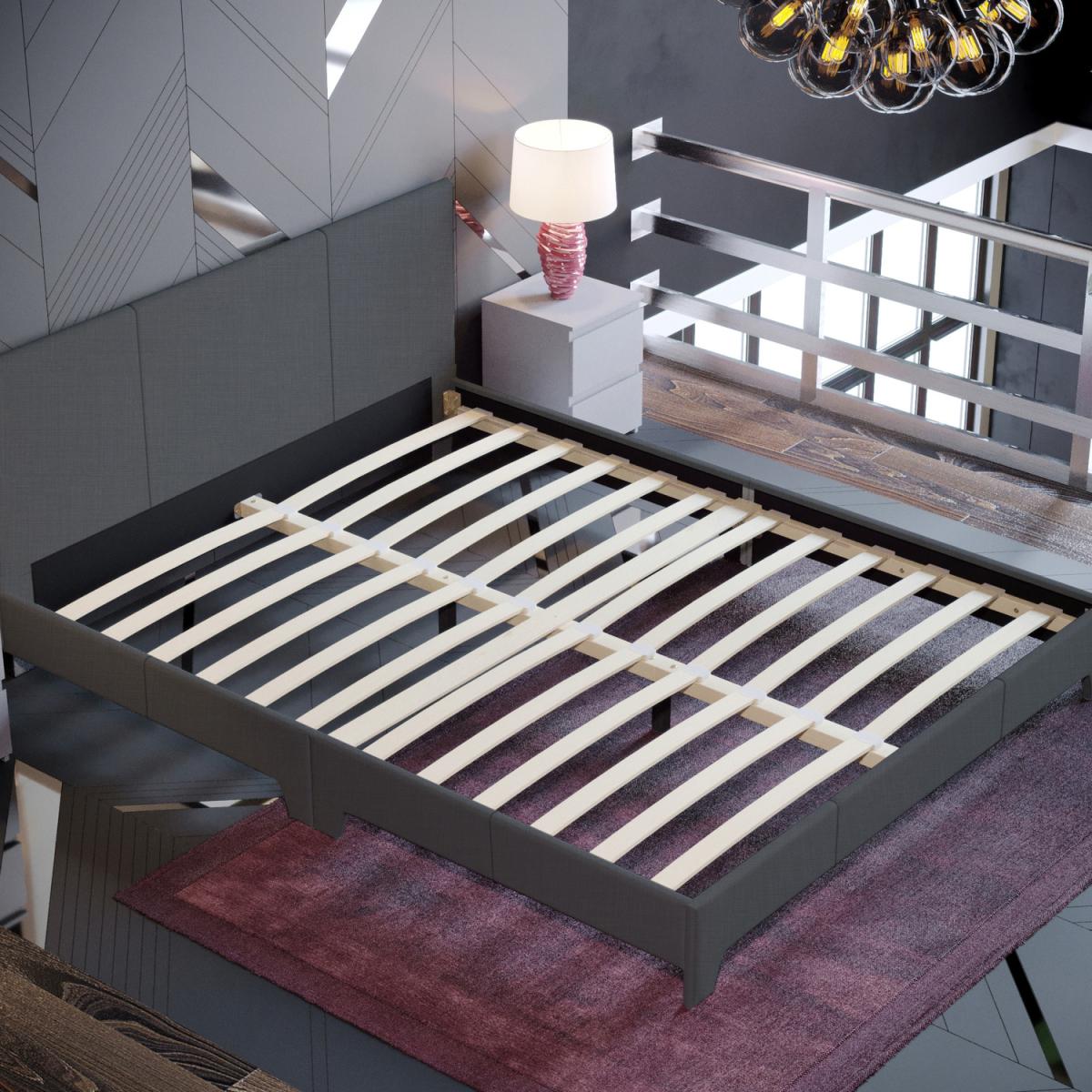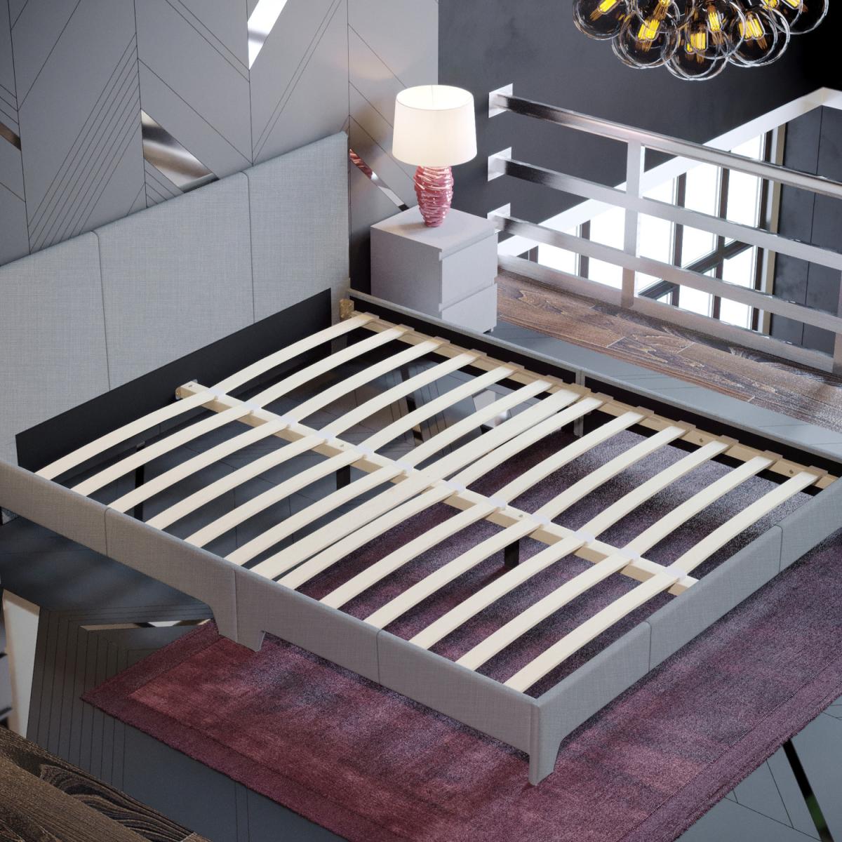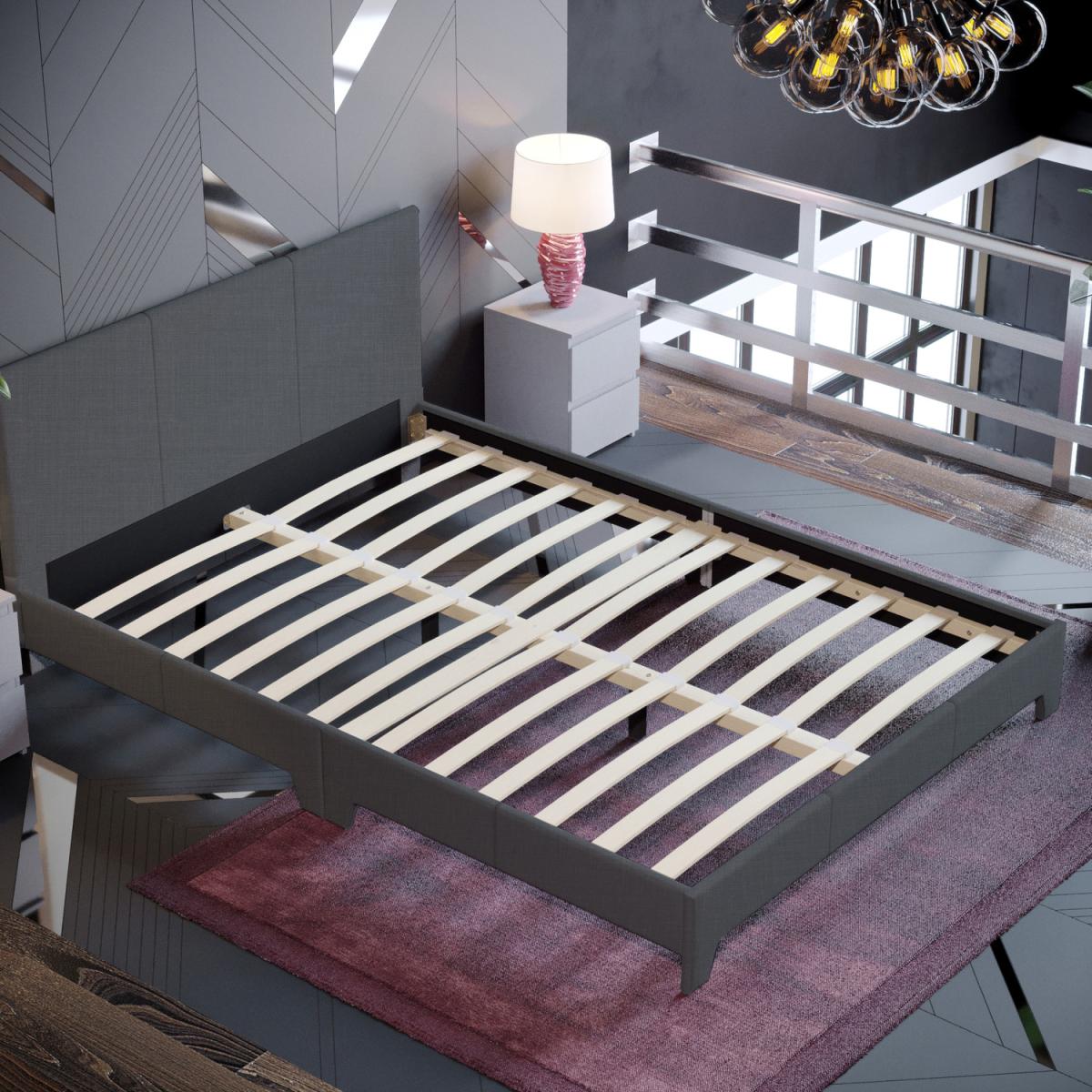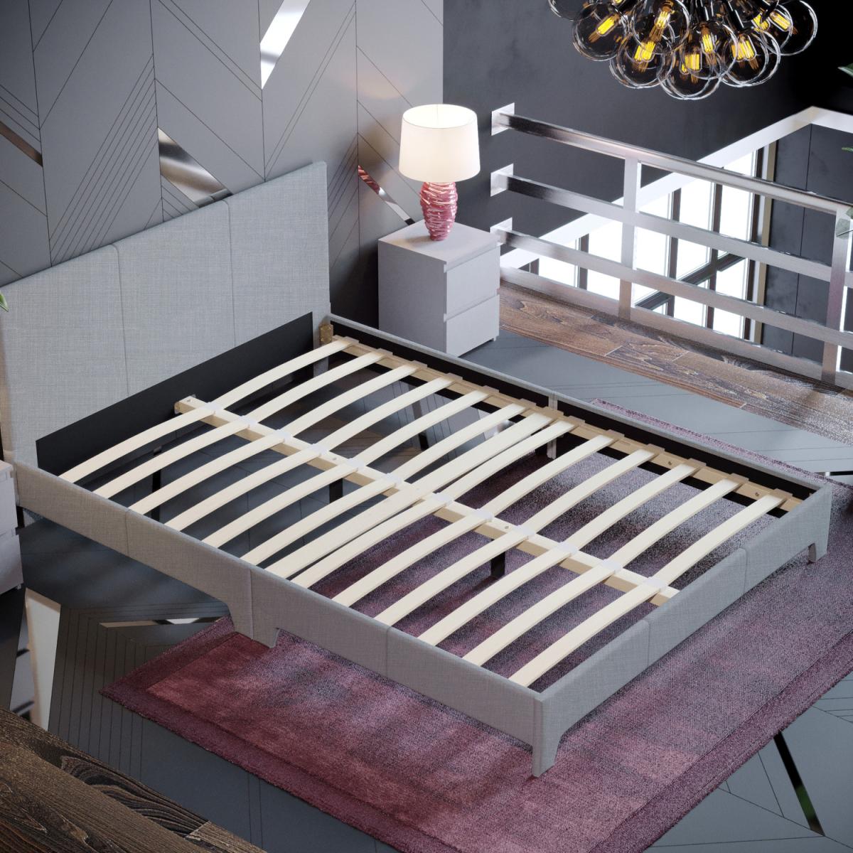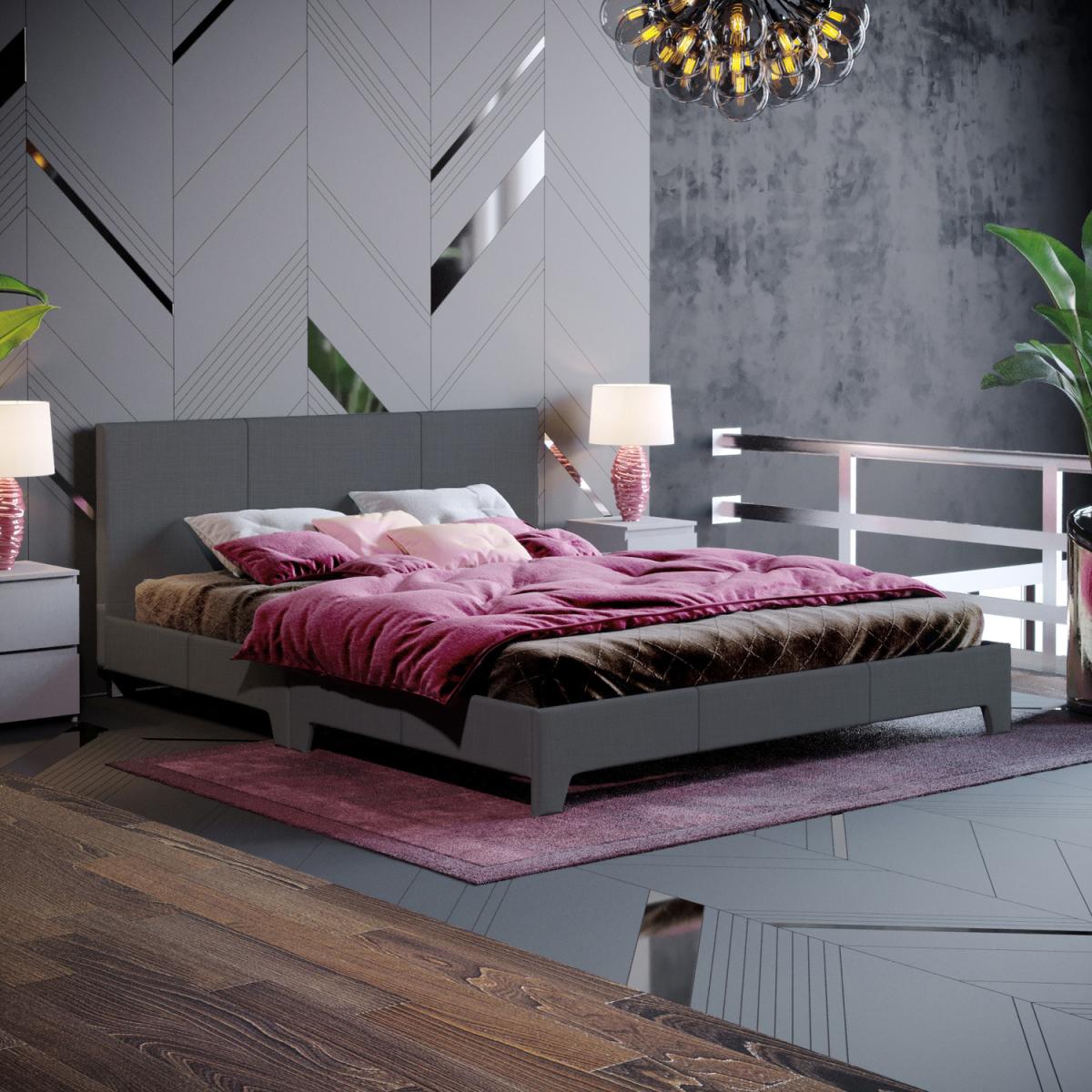 Make a statement in your bedroom with the Victoria Fabric Bed, featuring a high headboard and low footboard upholstered in quality materials, and mattress is ready to be put on plywood slats. Set atop bold upholstered legs for a regal and stately feel, this dramatic and deluxe bed frame will bring a sense of luxury living to your boudoir.