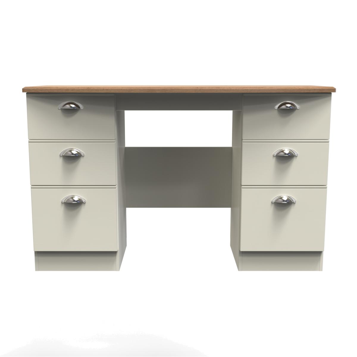 This practical 6 drawer kneehole deskvanity is perfect for any bedroom or office. A matching stool and mirror (in 2 sizes) are also available. It's easy to create a bedroom that showcases effortless chic, with this stylish range. The shaker-inspired design exudes understated luxury, each piece is finished in a number of colours with brushed steel handles and the option of a contrasting oak effect top. A well-thought-out mix of hanging and flat storage that's suitable for any room. All our furniture is made in the United Kingdom, to the highest quality. It is delivered direct to your location of choice by one of our two man delivery teams, and comes fully assembled (although legs may be removed to prevent damage in transit).