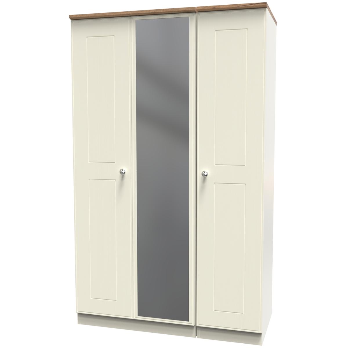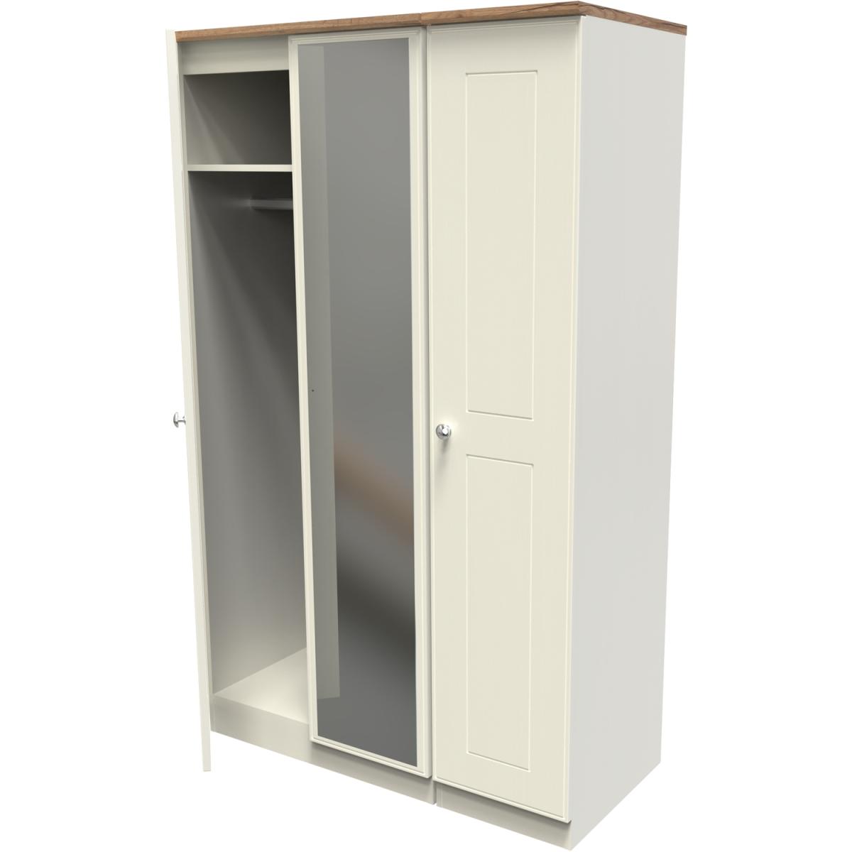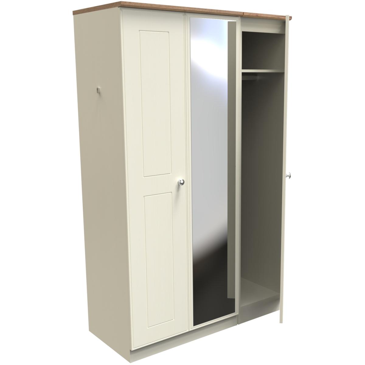 This full height triple 3 door wardrobe is perfect for any bedroom when a normal wardrobe is just not large enough. Also features a full height single mirrored door. It easy to create a bedroom that showcases effortless chic, with this stylish range. The shaker-inspired design exudes understated luxury, each piece is finished in a number of colours with brushed steel handles and the option of a contrasting oak effect top. A well-thought-out mix of hanging and flat storage that suitable for any room. All our furniture is made in the United Kingdom, to the highest quality. It is delivered direct to your location of choice by one of our two man delivery teams, and come full assembled (although legs may be removed to prevent damage in transit).