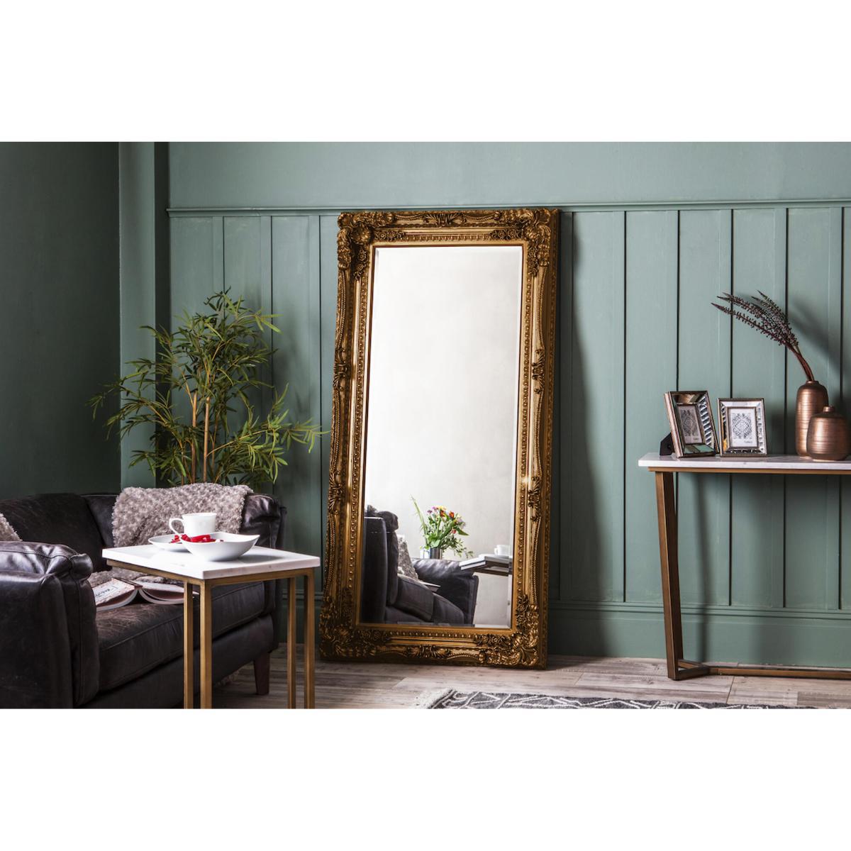 I really like the look of this tall mirror with its gold frame - the ornate detailing adds a touch of elegance that works well in both traditional and eclectic interiors. It’s great for creating the illusion of space and light, especially in smaller rooms or narrow corridors. To style it effectively, consider placing it opposite a window or a light source to enhance brightness. It also pairs beautifully with vintage or antique-furniture pieces, but can equally add glamour to more contemporary interiors when kept as a statement piece. For practical styling, hang it securely at eye level in the hallway, bedroom or living space, and use it to reflect interesting decor or artwork for a layered, polished look.