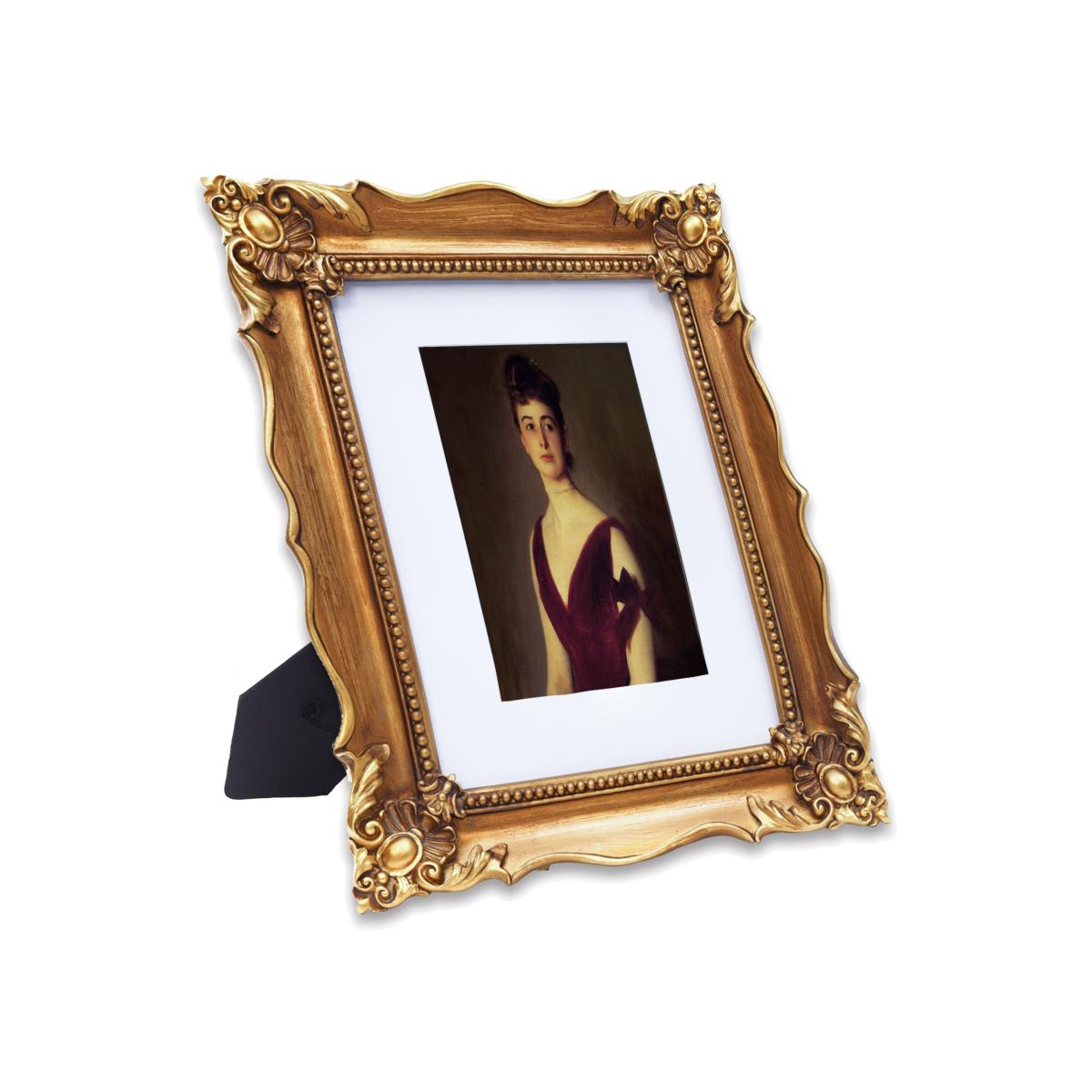 Handcrafted from eco-friendly resin with intricate Victorian embossing and ornate gold finish. Features authentic vintage detailing and ornate baroque styling. Includes an integrated easel stand for tabletop or mantelpiece display, whilst convenient hooks on the reverse enable versatile wall mounting in either portrait or landscape orientation.