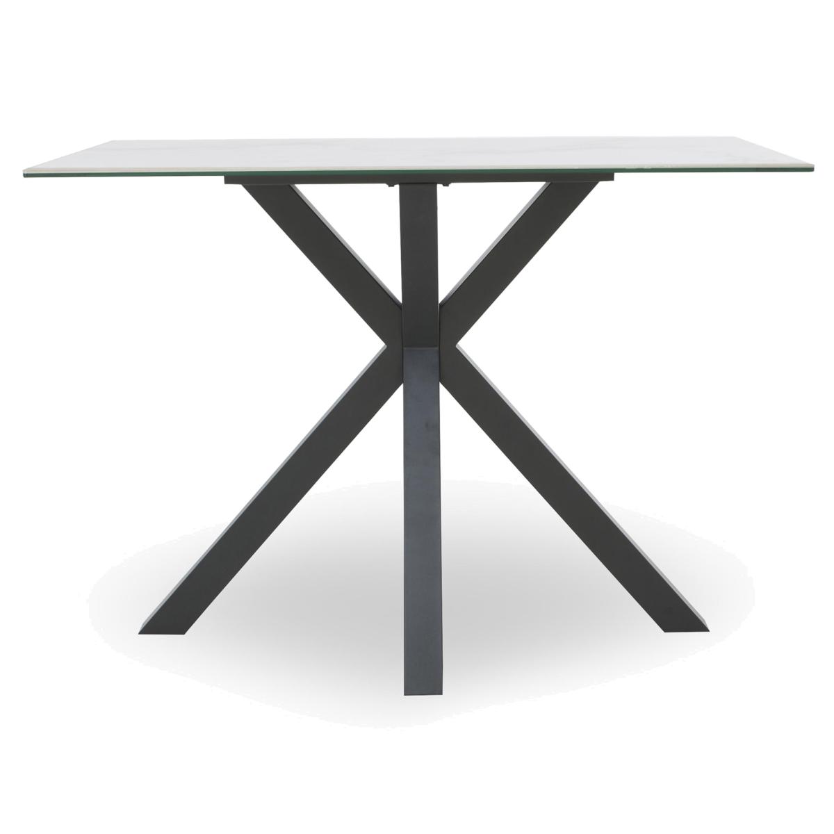 Glamour with a distinctive modern edge? You’ll find precisely that in our Vida collection of dining tables, dining sets and sideboards. Offered in a choice of two marble-effect ceramic finishes – sophisticated grey and traditional Carrara – the range’s extending dining tables and bar tables combine high-gloss surfaces with angled powder-coated metal bases. Sumptuously cushioned and upholstered, Vida swivel dining chairs and bar stools add more than a touch of luxury to any dining space. With its sleek style and seamless functionality in the form of effortless table extension mechanisms and self-returning swivel chair bases, our Vida range redefines glam style for the modern home. Put a kitchen corner to good use with this beautiful high-gloss bar table. With its marble-effect ceramic top and black metal base, it's stylish and practical. Seats six. Why you'll love it The essence of modern glam style with a distinctly urban edge. Statement-making bar table seats six. Glossy ceramic table top is super-durable and very stylish. Ceramic is scratch-resistant, chip-resistant, heat-resistant and so easy to clean. Choose sophisticated grey or traditional Carrara marble-effect finish. Black powder-coated steel base has a textured finish. This bar table is part of the Vida range. What you need to know Bar table seats 6. Please note that the ceramic table top is not 100% heatproof. We recommend using coasters and placemats at all times. Part of our modern glam Vida collection of dining room furniture.
