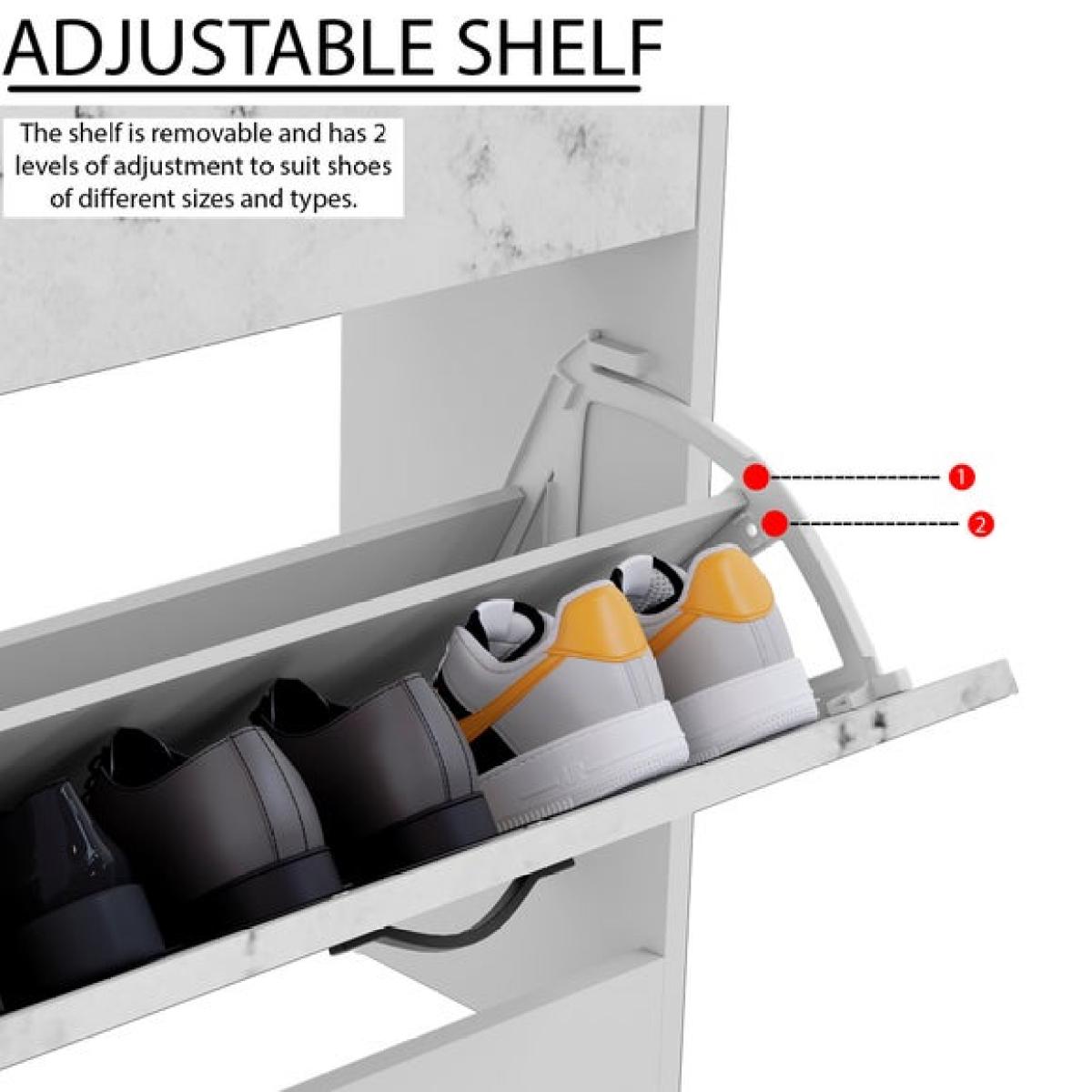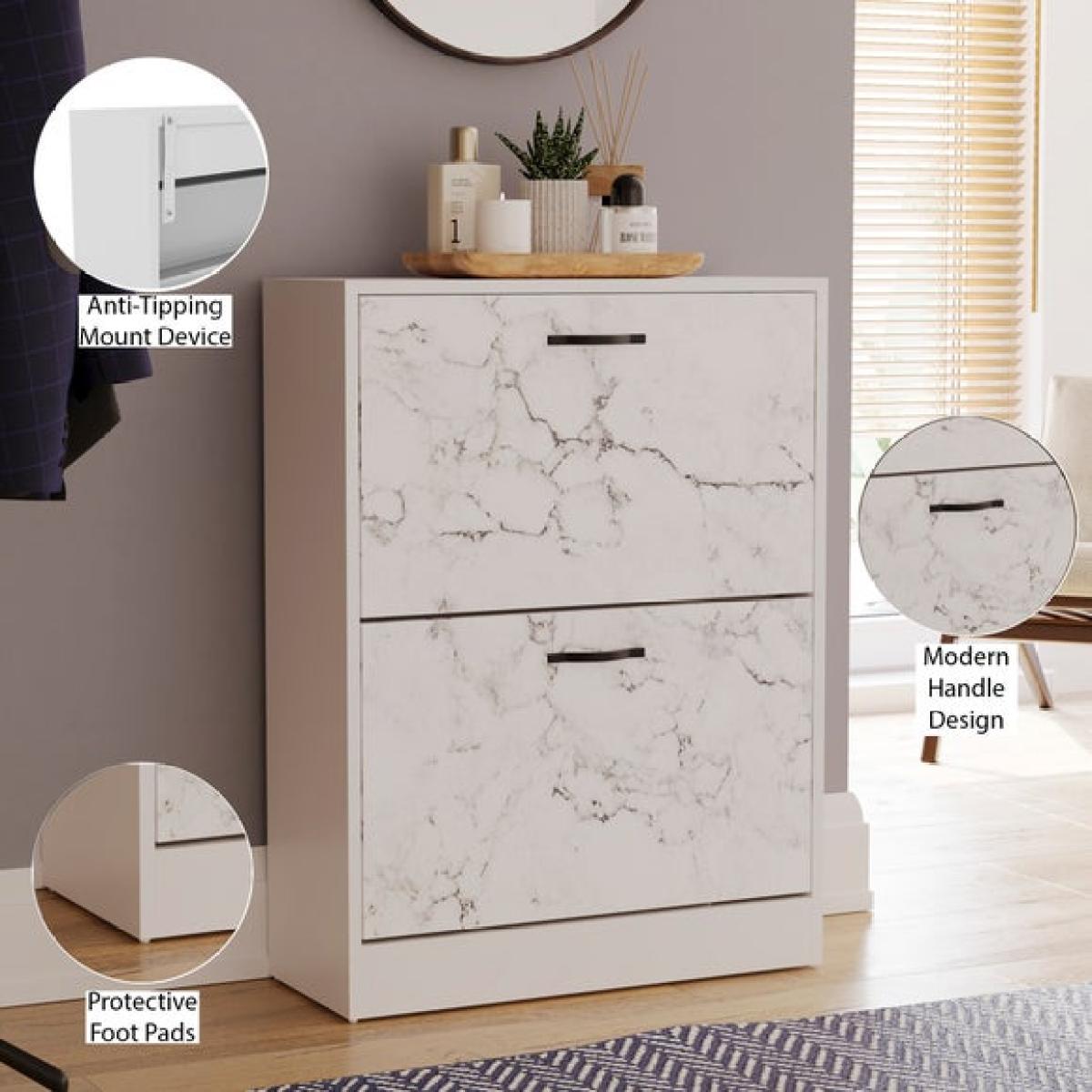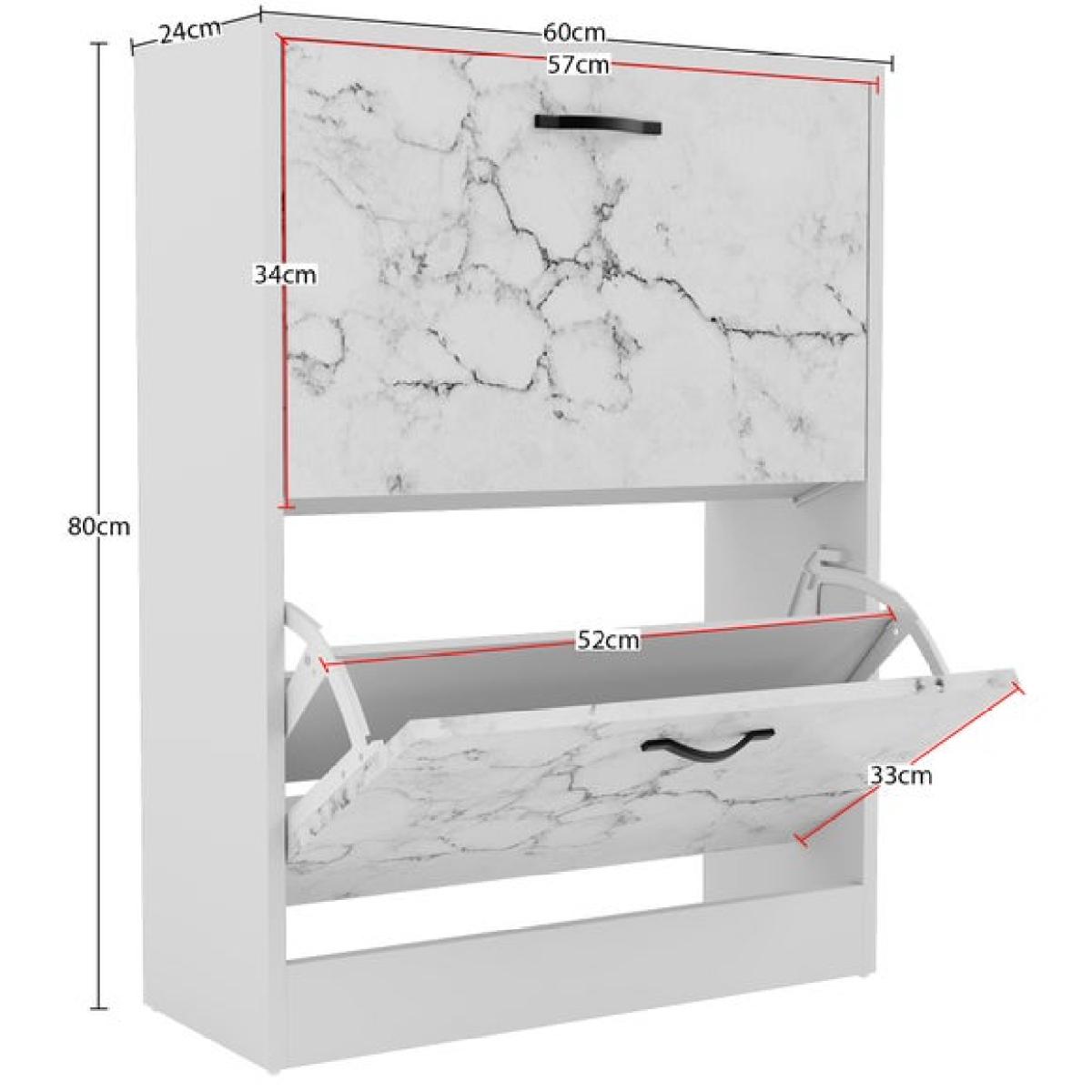 * Contemporary design with a marble effect finish * Stainless steel handles for a clean, modern look * Two drawers hold up to eight pairs of shoes Designed to keep your space neat without taking over the room. This cabinet pairs a sleek marble effect finish with a modern silhouette that works well in any setting. Stainless steel handles add a polished touch while making each drawer easy to open. With space for up to eight pairs of shoes, it’s a tidy solution for busy households. The compact shape fits neatly into hallways, bedrooms or anywhere short on storage. Built from durable materials and available in a range of colours.