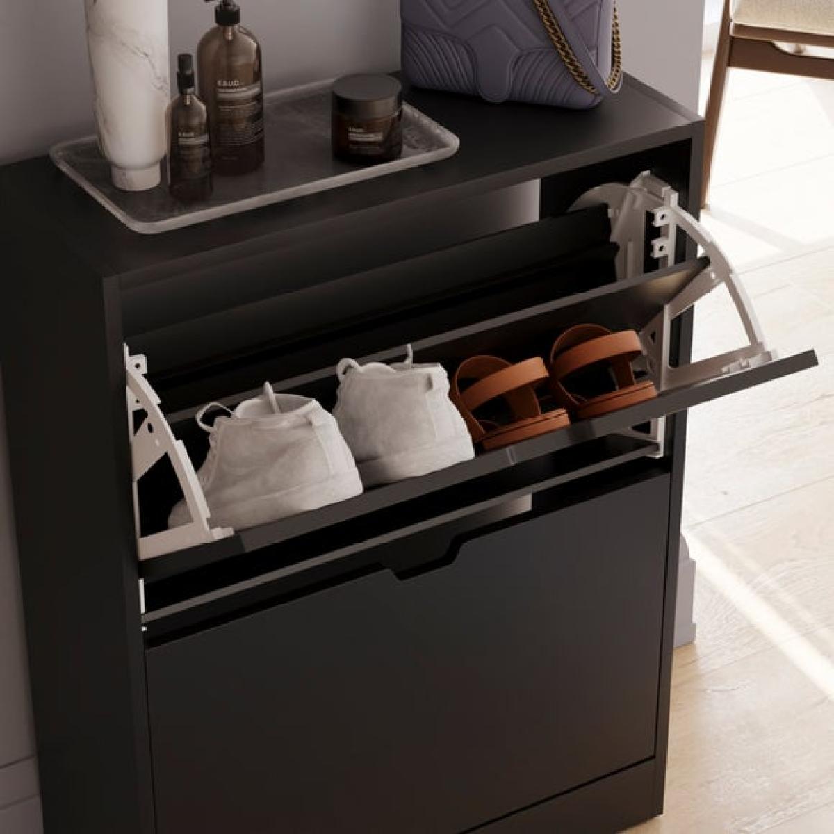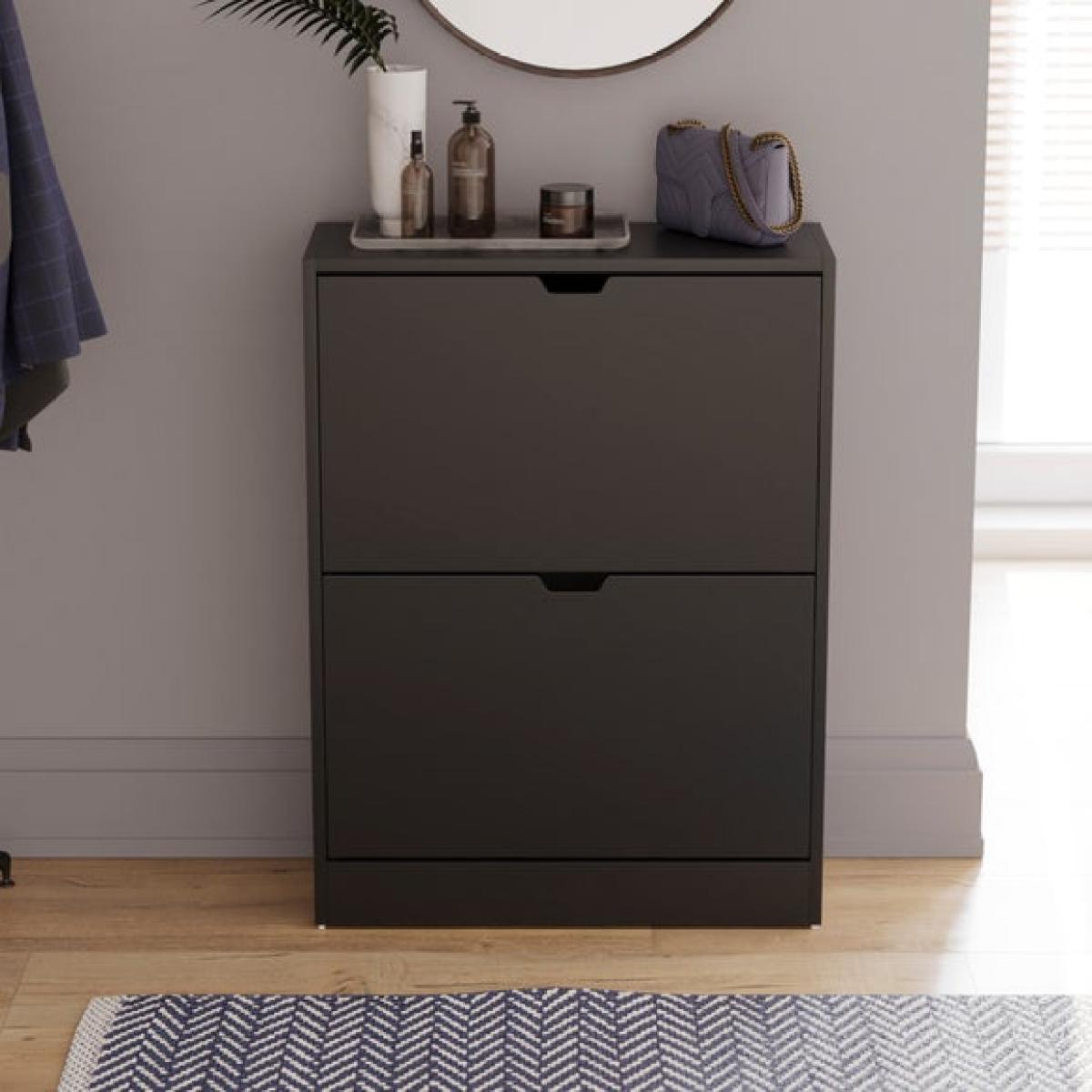 * Sleek design with cut-out handles * Two drawers hold up to eight pairs of shoes * Compact size ideal for smaller rooms Designed to keep shoes in order and your space looking neat. This cabinet features a modern silhouette with cut-out handles that give it a clean, streamlined finish. Two spacious drawers offer room for up to eight pairs of shoes, making it a practical choice for busy households. Its compact shape fits easily into hallways, bedrooms or anywhere short on storage. Built from durable materials, it’s ready for everyday use. Available in a range of colours to suit your space.