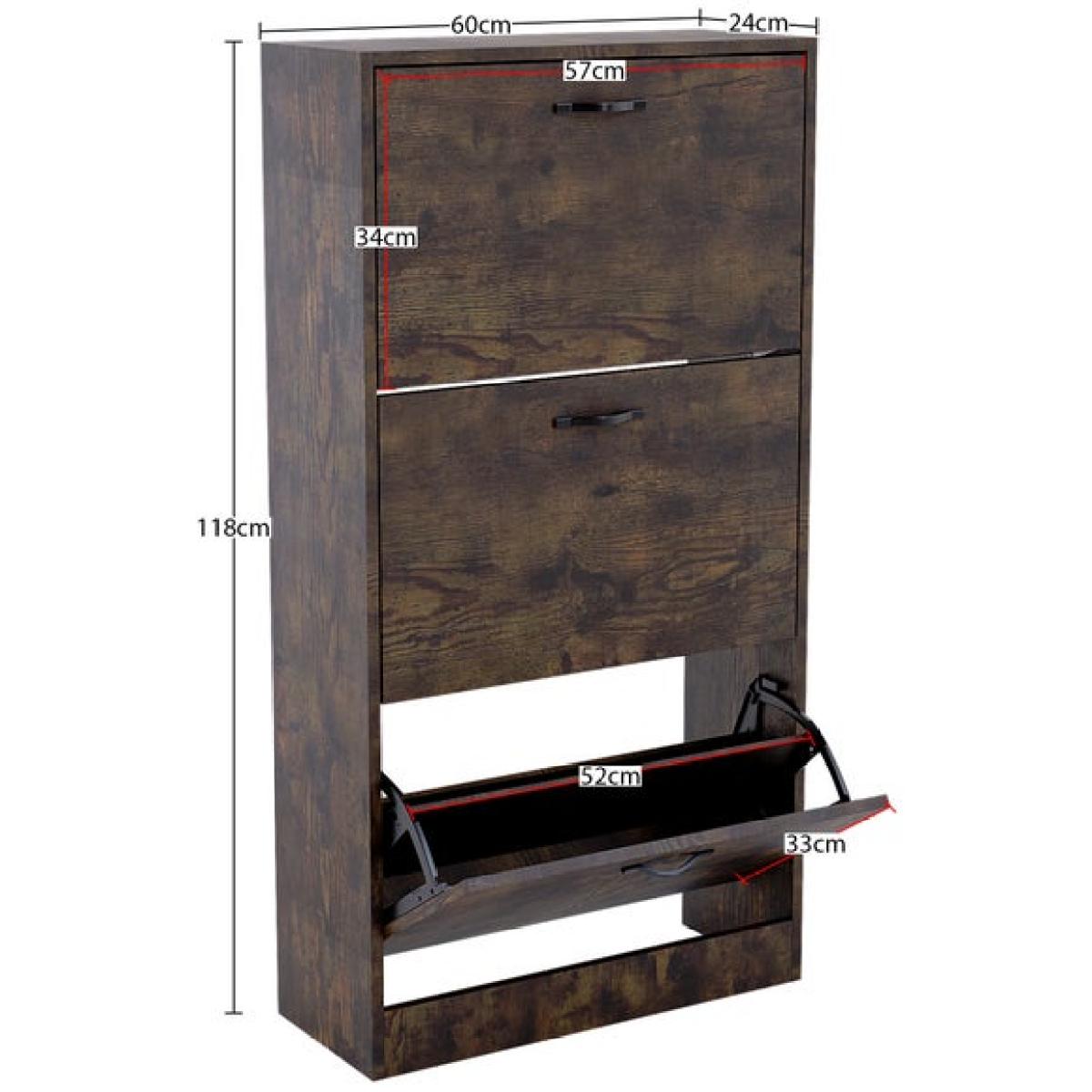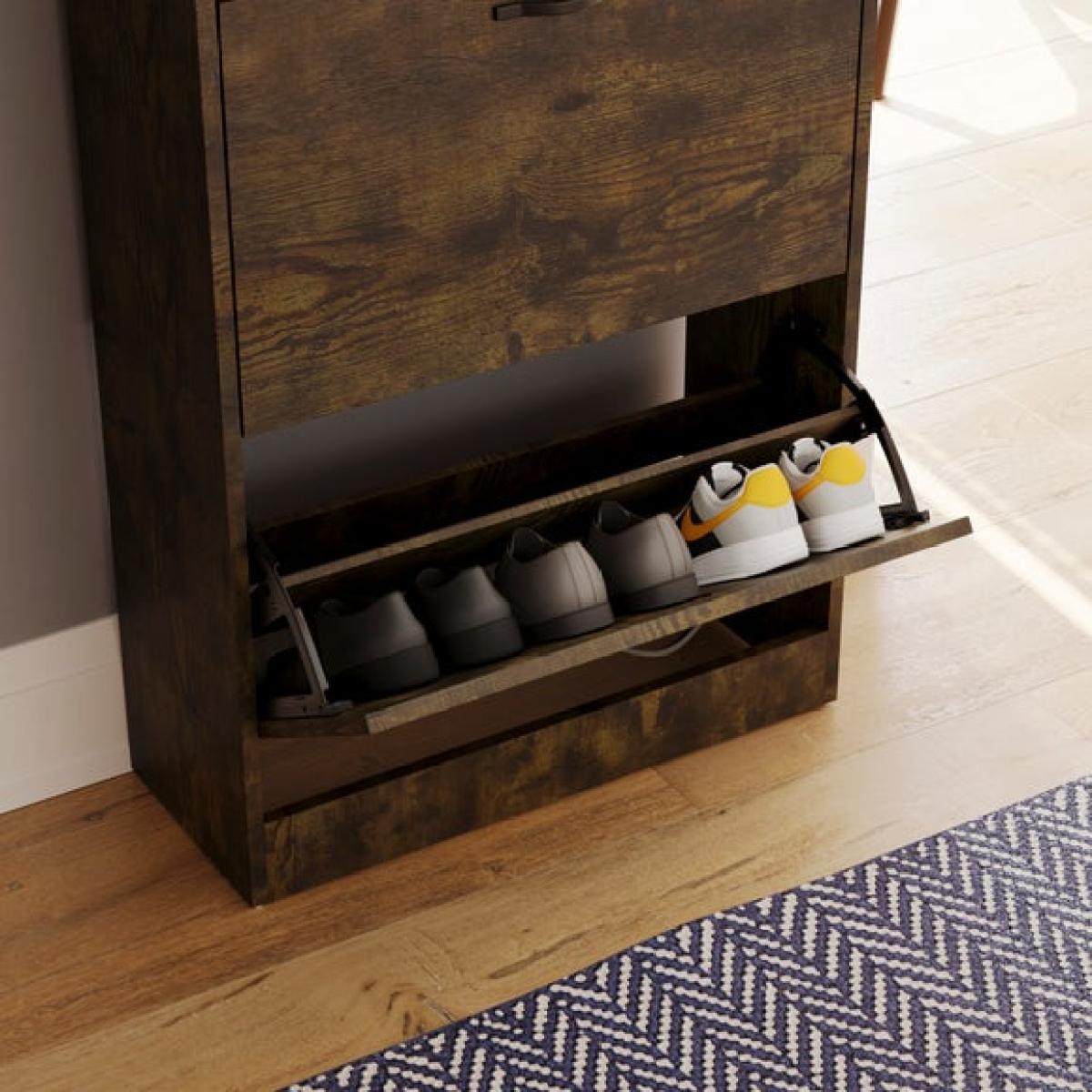 * Dark wood effect finish adds warmth and depth * Sleek design blends into a variety of spaces * Stainless steel handles offer a smooth grip A smart way to keep shoes organised and your space looking neat. This cabinet features a sleek dark wood effect finish with a modern silhouette that works well in a range of interiors. Stainless steel handles add a clean, polished touch and make each drawer easy to open. With space for up to twelve pairs of shoes, it’s a tidy solution for busy households. The compact shape fits neatly into hallways, bedrooms or anywhere short on storage.