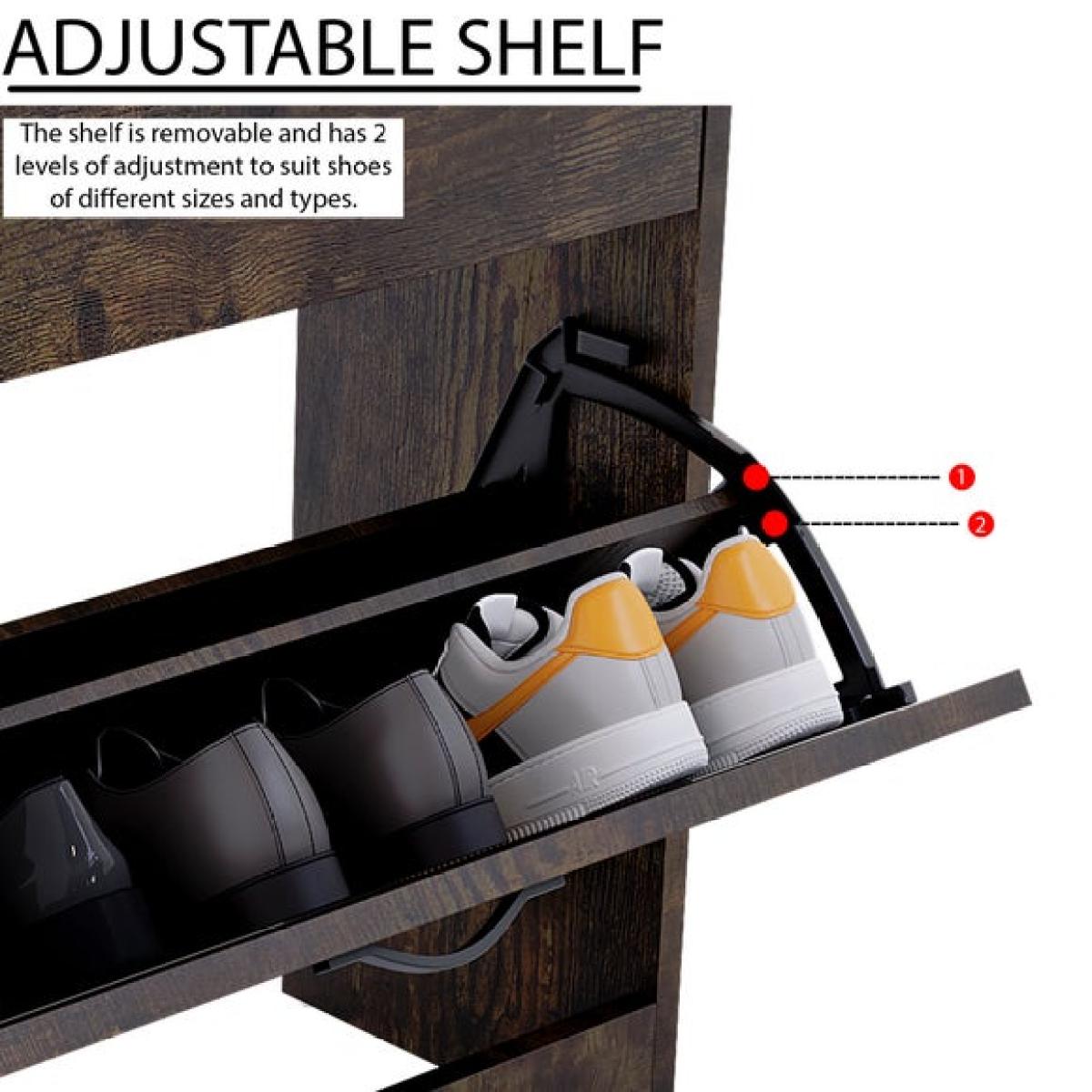 I love this shoe cabinet for its dark wood effect, which adds a touch of warmth and sophistication to both modern and traditional interiors. It works really well in hallways or near the entrance, helping to keep footwear organised and out of sight while maintaining a clean, tidy look. For styling tips, consider pairing it with minimal accessories or a sleek mirror above to maximise space and reflect light. The dark finish makes it versatile enough to complement wood, metal, or colour-pop accessories, making it a practical yet stylish addition to any home.