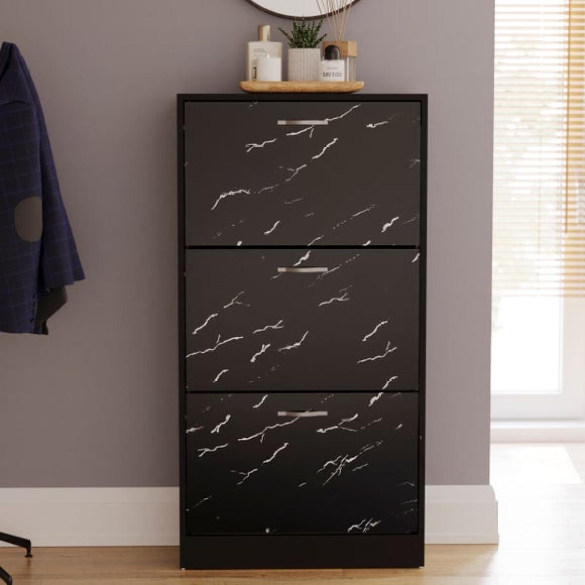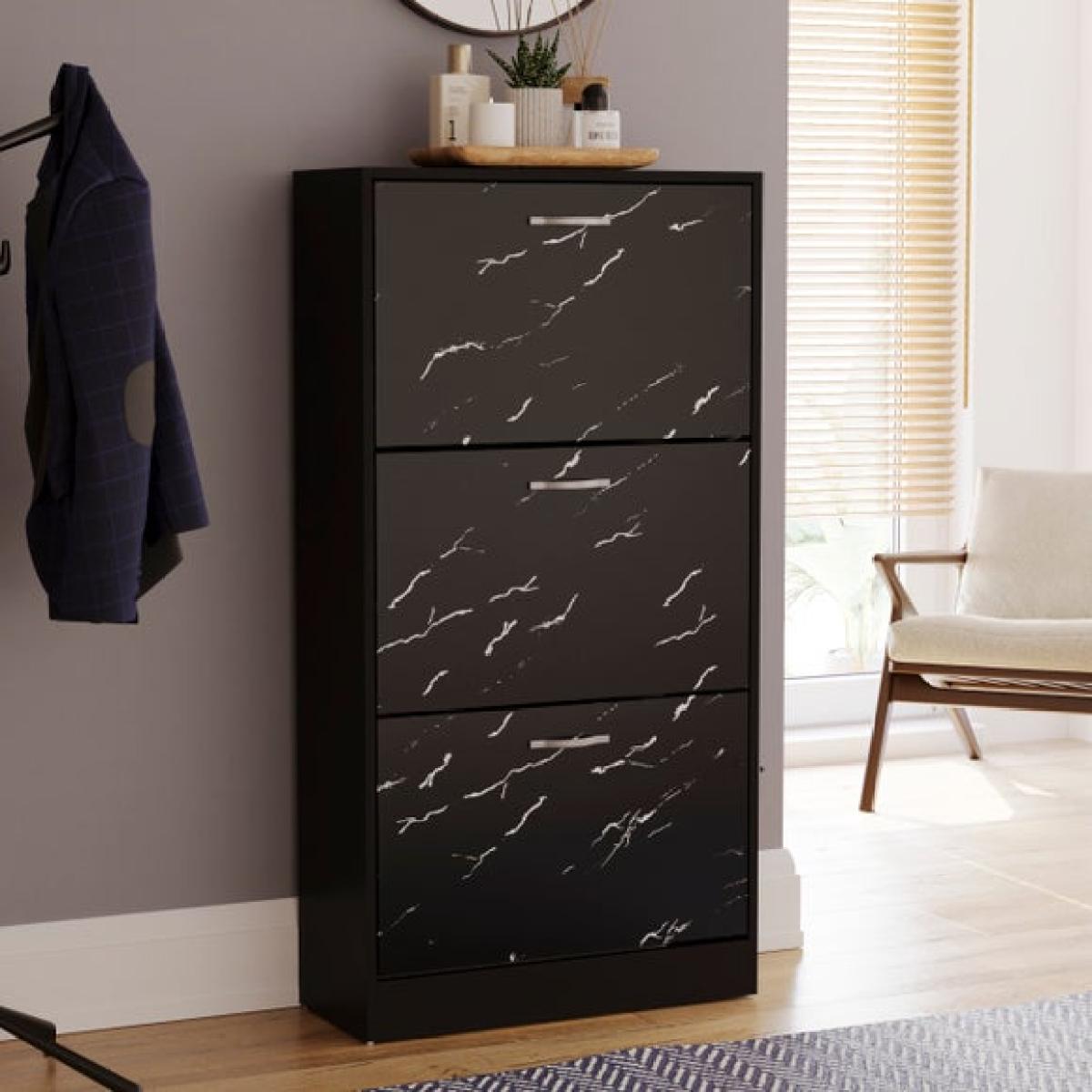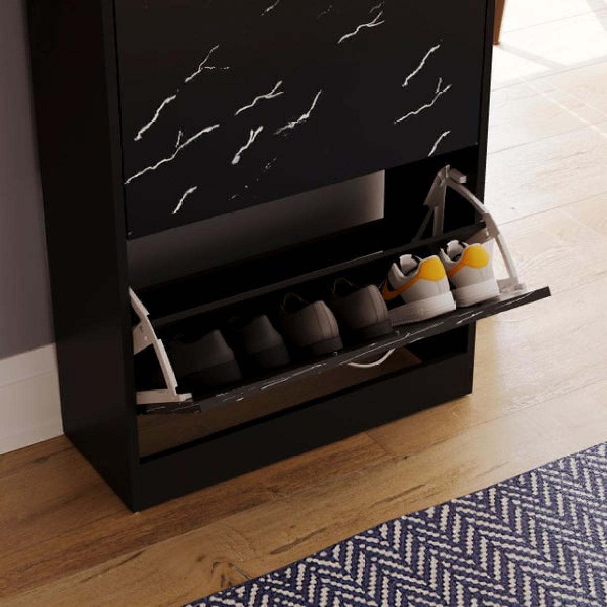 * Marble effect finish adds a modern edge * Sleek silhouette blends into any room * Stainless steel handles offer a smooth grip A smart way to keep shoes organised and your space looking neat. This cabinet pairs a sleek marble effect finish with a modern silhouette that works well in any setting. Stainless steel handles add a polished touch while making each drawer easy to open. With space for up to twelve pairs of shoes, it’s a tidy solution for busy households. The compact shape fits neatly into hallways, bedrooms or anywhere short on storage. Built from durable materials and available in a range of colours.