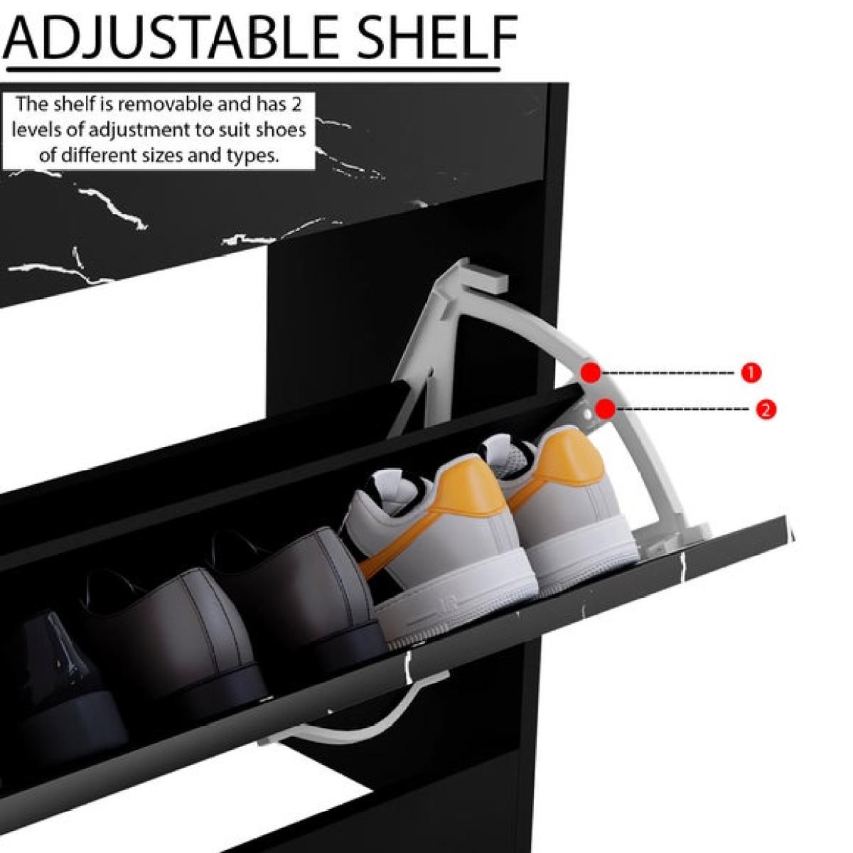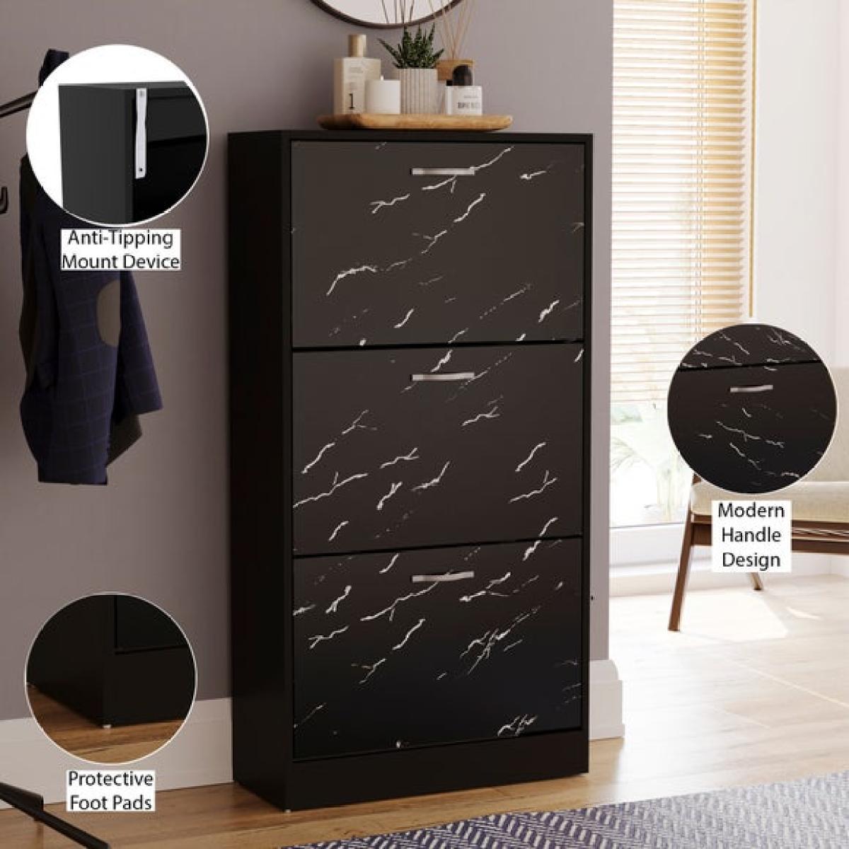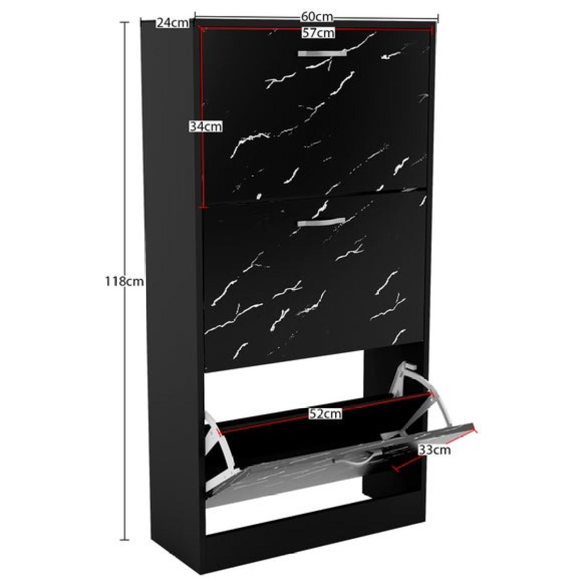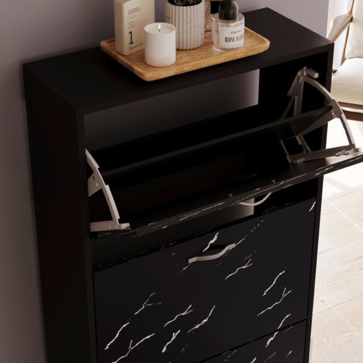 * Marble effect finish adds a modern edge * Sleek silhouette blends into any room * Stainless steel handles offer a smooth grip A smart way to keep shoes organised and your space looking neat. This cabinet pairs a sleek marble effect finish with a modern silhouette that works well in any setting. Stainless steel handles add a polished touch while making each drawer easy to open. With space for up to twelve pairs of shoes, it’s a tidy solution for busy households. The compact shape fits neatly into hallways, bedrooms or anywhere short on storage. Built from durable materials and available in a range of colours.