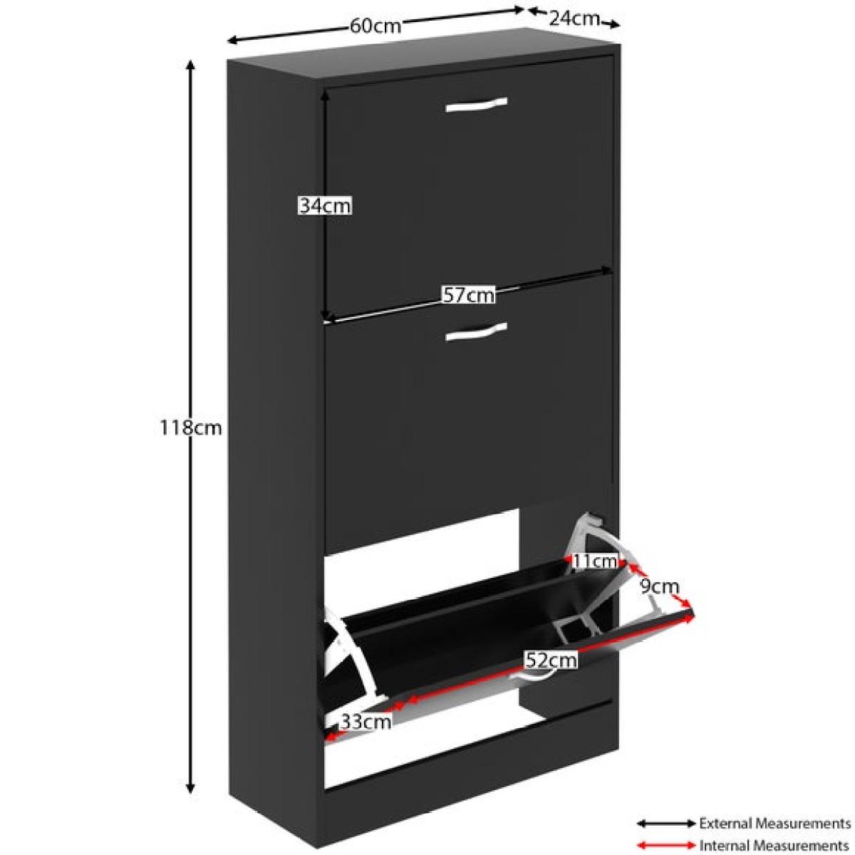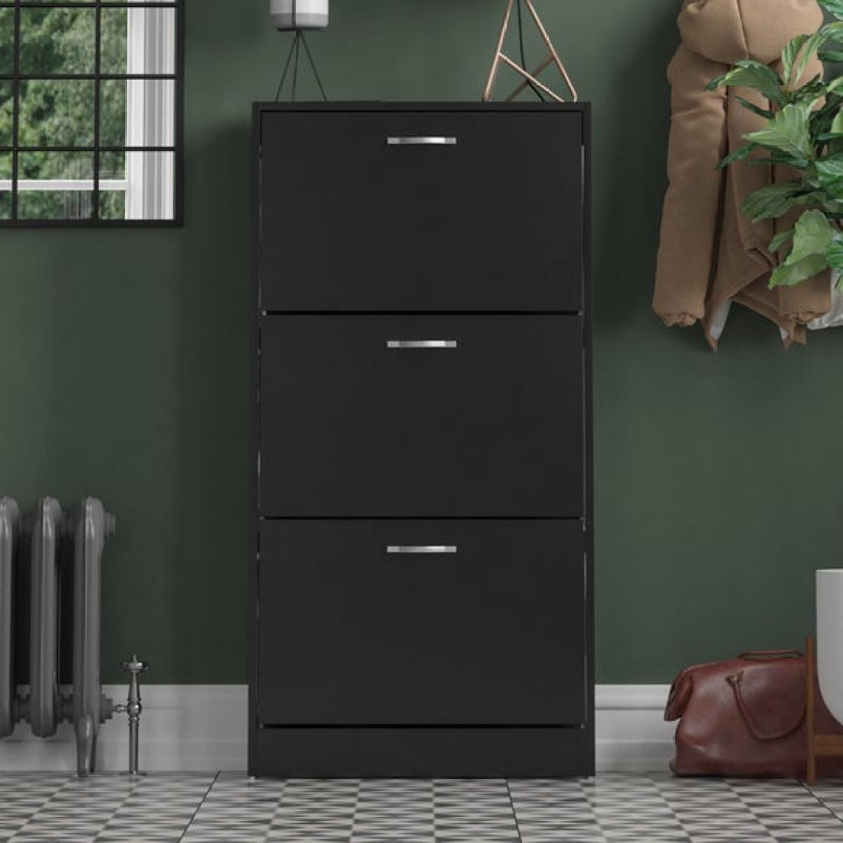 * Sleek design blends effortlessly with modern interiors * Stainless steel handles offer a clean, contemporary finish * Three drawers store up to twelve pairs of shoes * Compact shape fits neatly into smaller rooms Designed to keep shoes organised and your space looking neat. This cabinet features a modern silhouette with stainless steel handles that add a polished finish. Three spacious drawers offer room for up to twelve pairs of shoes, making it a practical choice for busy households. Its compact shape fits easily into hallways, bedrooms or anywhere short on storage. Built from durable materials, it’s ready for everyday use. Available in a range of colours to suit your space.