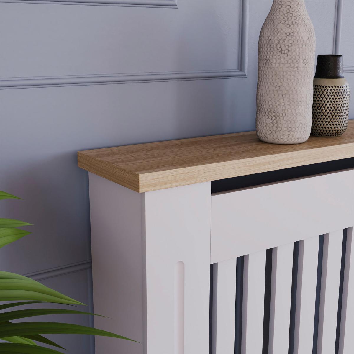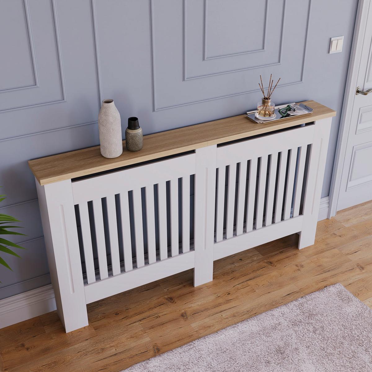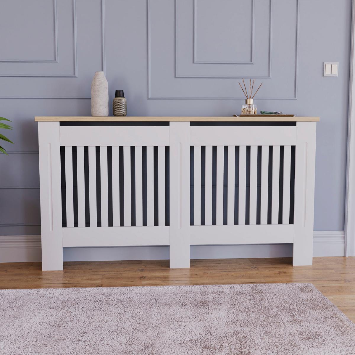 * 5kg Max. Load Tested Weight* Durable and Sturdy Build* Versatile Storage Solution* Contemporary, vertical slat design* Easy Assembly The Shaker Style Arlington Radiator Cover blends elegance and functionality, featuring a sleek vertical slat design that enhances any room while optimizing heat circulation. This cover not only elevates your décor but also provides a protective barrier, making it ideal for homes with children or pets by reducing the risk of accidental burns. Crafted for durability, it doubles as a stylish shelf for displaying decorative items and is designed for easy installation, ensuring a quick setup. With its ventilated structure, the cover promotes efficient heat distribution while adding a timeless, contemporary touch to your space.