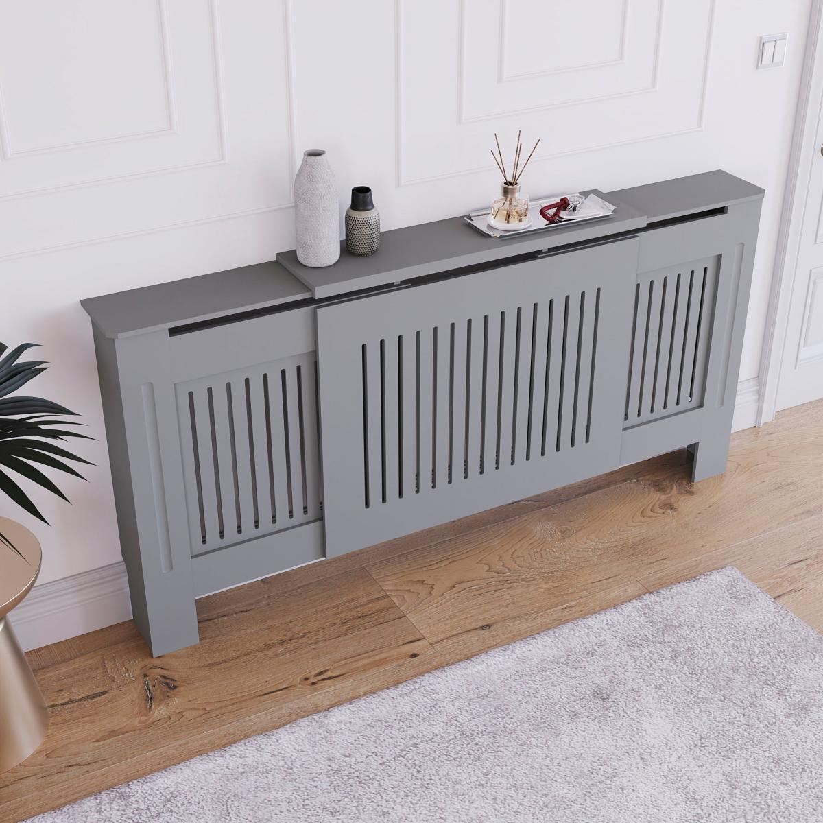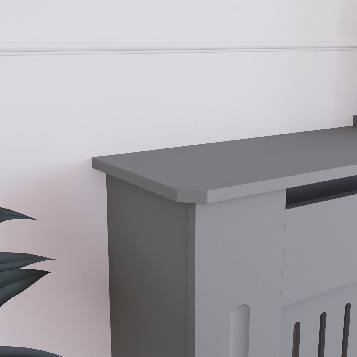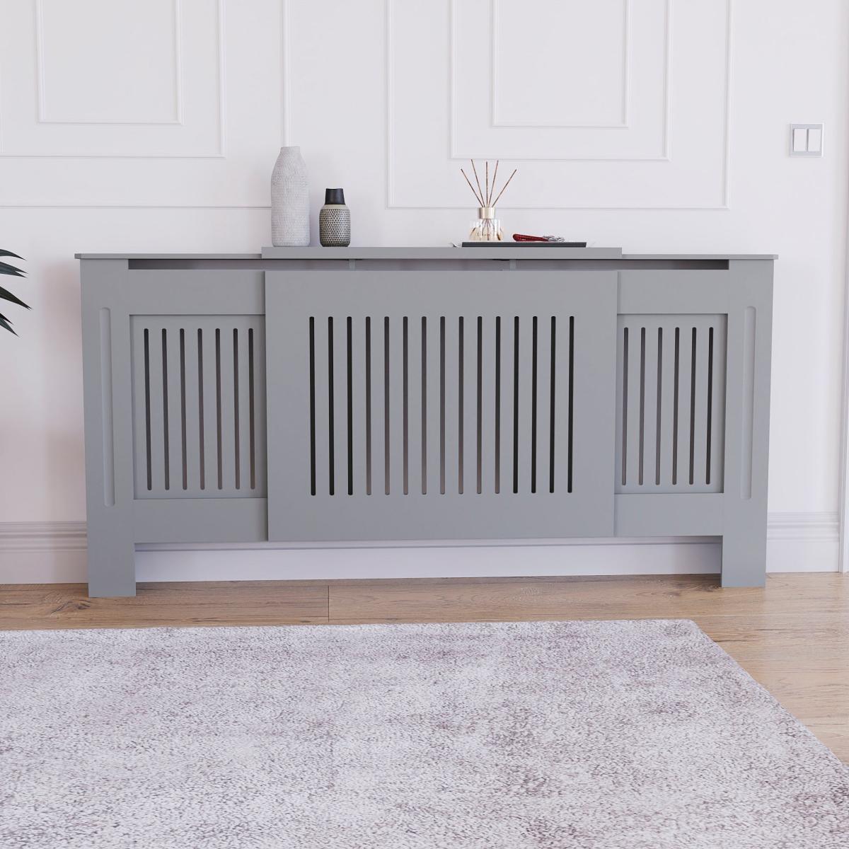 * 5kg Max. Load Tested Weight* Durable and Sturdy Build* Versatile Storage Solution* Contemporary, vertical panel design* Easy Assembly The Chelsea Radiator Cover combines modern design with practicality, featuring a sleek vertical panel pattern that conceals radiators while adding a touch of elegance to any room. Made from high-quality materials, it offers both durability and a stylish appearance, seamlessly fitting into various interior styles. This cover not only enhances the look of your space but also promotes efficient heat circulation, ensuring even warmth throughout the room. Its surface doubles as a handy shelf for displaying decor, and installation is a breeze with the included hardware. Ideal for families, it also provides a protective barrier against hot radiators.