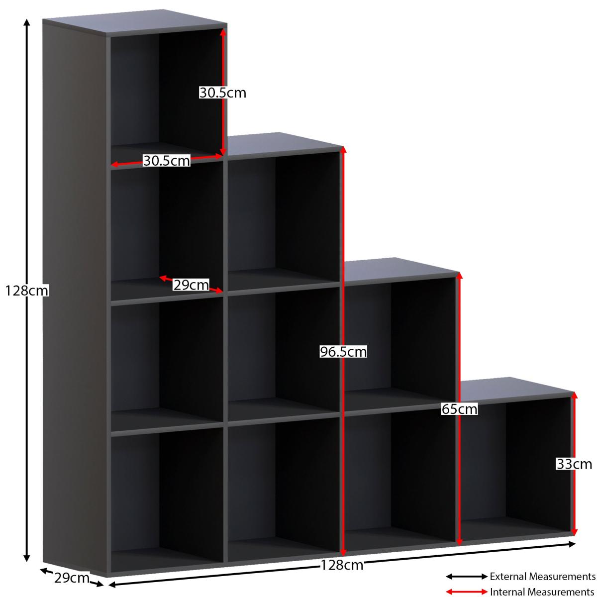 * Durable and Sturdy Build* Versatile Storage Solution* Contemporary, minimalist design* Easy Assembly with instructions included* Corresponding items available The Vida Designs Durham 10 Cube Staircase Storage brings both style and function to any room with its innovative staircase design. Featuring ten roomy cubes, it offers extensive storage for organizing everything from books and toys to decorative accents. The unit's sleek and modern look complements various decor styles, making it suitable for living rooms, bedrooms, or home offices. Crafted for durability and stability, this storage piece not only helps declutter your space but also acts as a striking display area for personal decor, offering a unique and practical addition to your home.