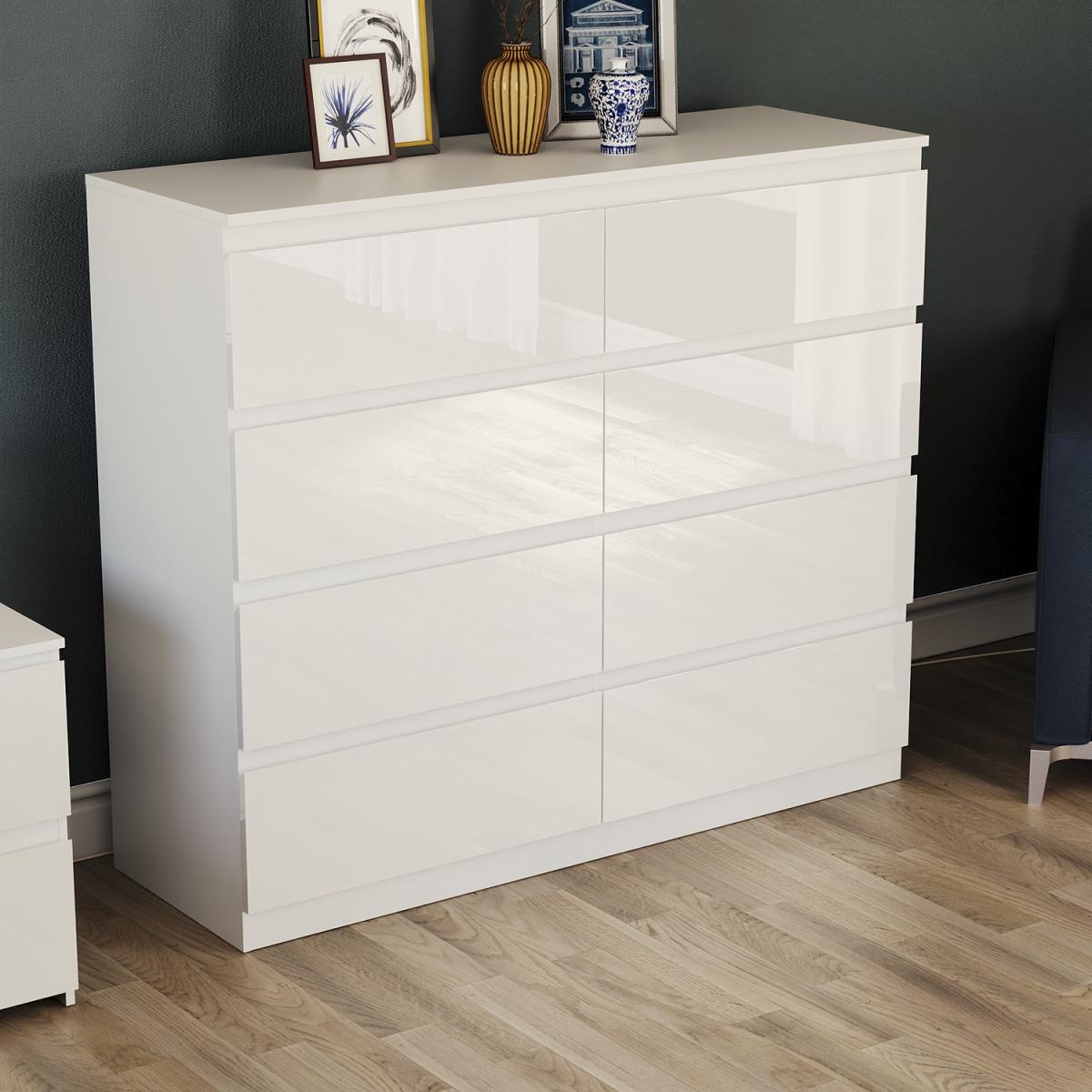 Introducing our Glinton 8-Drawer Chest of Drawers, the perfect addition to any bedroom or living space! Made from high-quality materials with a sleek finish, this chest of drawers feature high gloss drawers and a matte carcass for a unique and contemporary look. Featuring a handle-free design, the drawers smoothly glide open and closed with ease, making it a breeze to access your clothes or other belongings. With three spacious drawers, this chest provides ample storage space for all your essentials.
