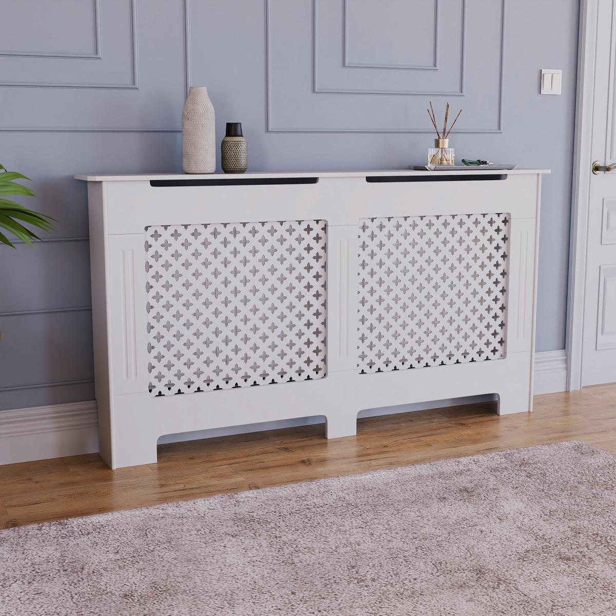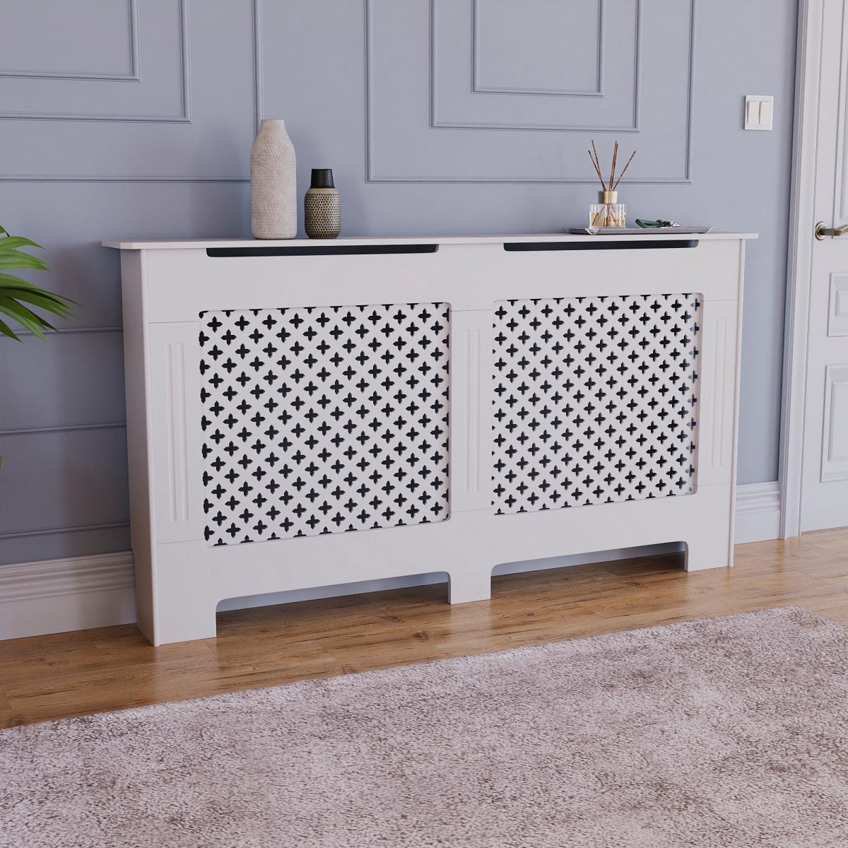 * 5kg Max. Load Tested Weight * Durable and Sturdy Build * Versatile Storage Solution * Elegant design * Easy Assembly The Oxford Radiator Cover combines elegance and practicality with its eye-catching cross pattern design, making it a stylish addition to any room. Beyond its decorative appeal, the cover promotes efficient heat circulation, ensuring warmth is evenly distributed throughout your space. It also acts as a protective barrier, offering added safety for households with children or pets by preventing accidental burns. Made from durable, high-quality materials, the Oxford Radiator Cover is built to last, providing both function and style. With easy installation and low maintenance, it's a perfect way to enhance your home's look and comfort.