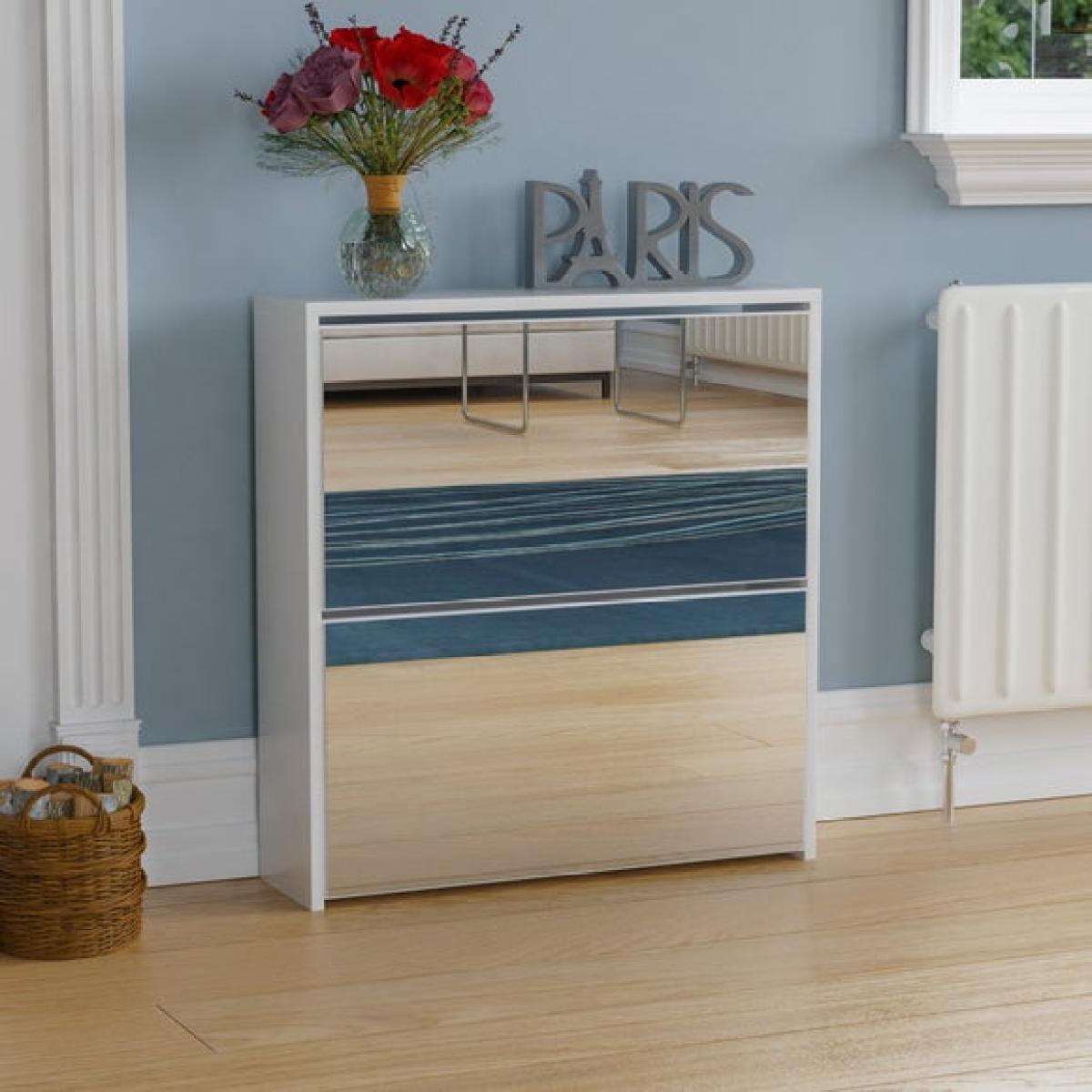* Mirrored fronts reflect light and add depth * Sleek design works well in modern spaces * Two drawers store up to eight pairs of shoes A neat way to keep shoes tucked away and your space looking brighter. This cabinet features mirrored drawer fronts that reflect light and help smaller rooms feel more open. Its modern design blends easily with a range of interiors, and the handle-free drawers keep the look clean and uncluttered. Two drawers offer space for up to eight pairs of shoes, keeping everyday clutter out of sight. The compact shape makes it a smart fit for hallways, bedrooms or anywhere short on storage. Built from durable materials and available in a range of colours.