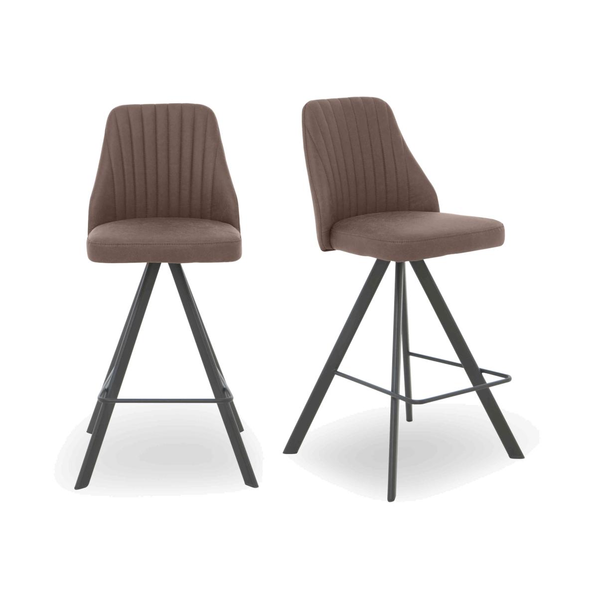Glamour with a distinctive modern edge? You’ll find precisely that in our Vida collection of dining tables, dining sets and sideboards. Offered in a choice of two marble-effect ceramic finishes – sophisticated grey and traditional Carrara – the range’s extending dining tables and bar tables combine high-gloss surfaces with angled powder-coated metal bases. Sumptuously cushioned and upholstered, Vida swivel dining chairs and bar stools add more than a touch of luxury to any dining space. With its sleek style and seamless functionality in the form of effortless table extension mechanisms and self-returning swivel chair bases, our Vida range redefines glam style for the modern home. Transform your casual dining area with this pair of glam bar stools. The swivel bases make these the perfect choice for a more compact space. Why you'll love it Modern glam swivel bar stools promise elevated dining style. Soft faux leather upholstery in a choice of colours. Comfortably shaped seat backs with elegant vertical stitching. Self-returning chair bases – they swivel 180° and then swivel back into place. Black powder-coated steel legs and footrest with a textured finish. Also available in sets of 4 and 6 bar stools. This pair of swivel bar stools is part of the Vida range. What you need to know Foam seat cushioning. Part of our modern glam Vida collection of dining room furniture.