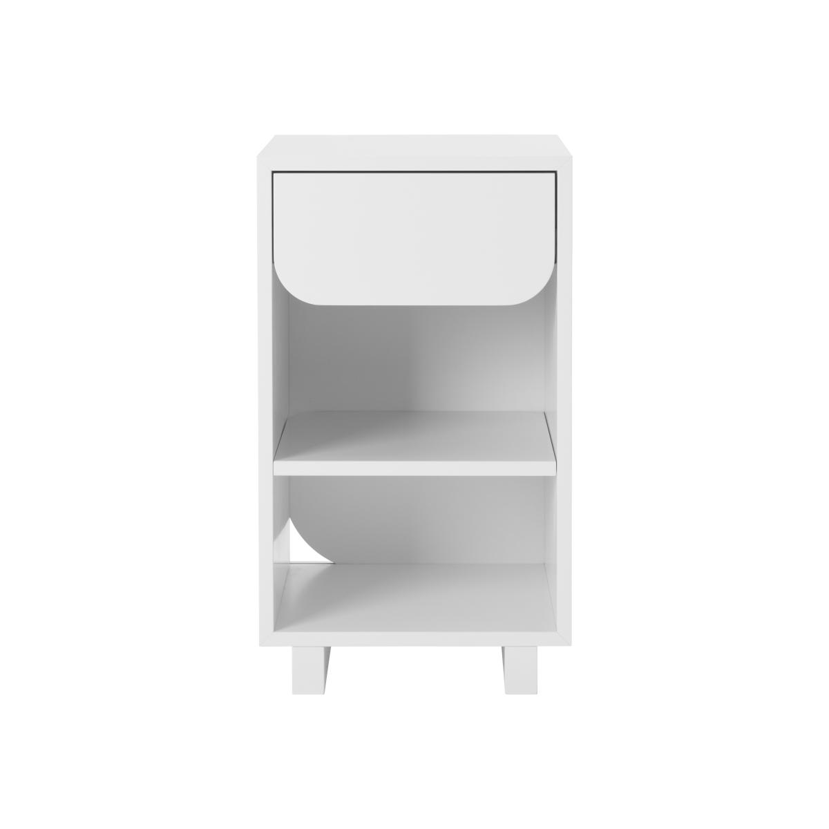 I really like this bedside table in white as it offers a clean and versatile look that works well in a variety of interiors from Scandi minimalism to contemporary setups. Its simple silhouette makes it easy to style with a mix of textures and materials-think pairing with soft fabrics or metallic accents for added interest. Practical tips include using the top surface for a bedside lamp or a favourite book, while keeping the open shelving clutter-free with small baskets or organisers. Its understated design allows it to complement both bold and subtle décor themes, making it a flexible piece for creating a calm and organised bedroom space.