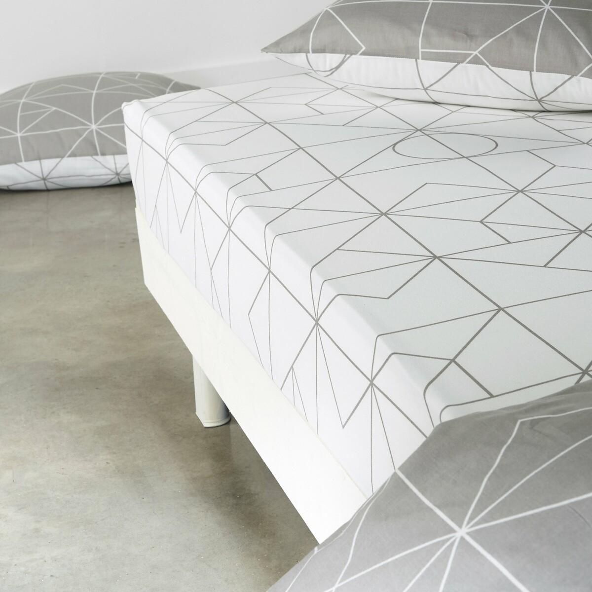 Vidmey Printed Fitted Sheet. This fitted sheet featuring grey graphic motifs on a white background is the perfect match for the Vidmey bedding. Match this fitted sheet with the rest of the bedding in the range for total coordination. You can also mix and match it with different colours and designs from our other bedding ranges to suit your mood and add your own unique style to the bedroom.