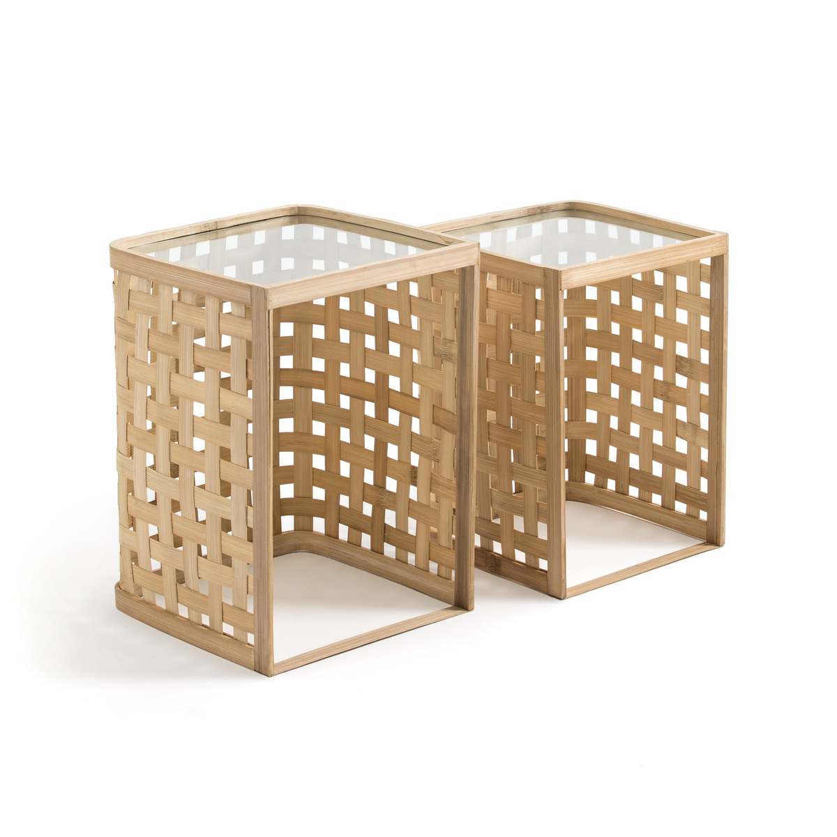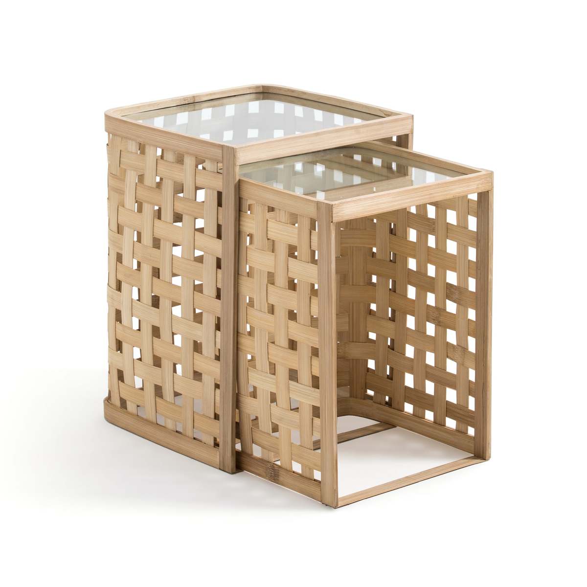 Vidmey Nest of 2 Side Tables in Bamboo & Glass
