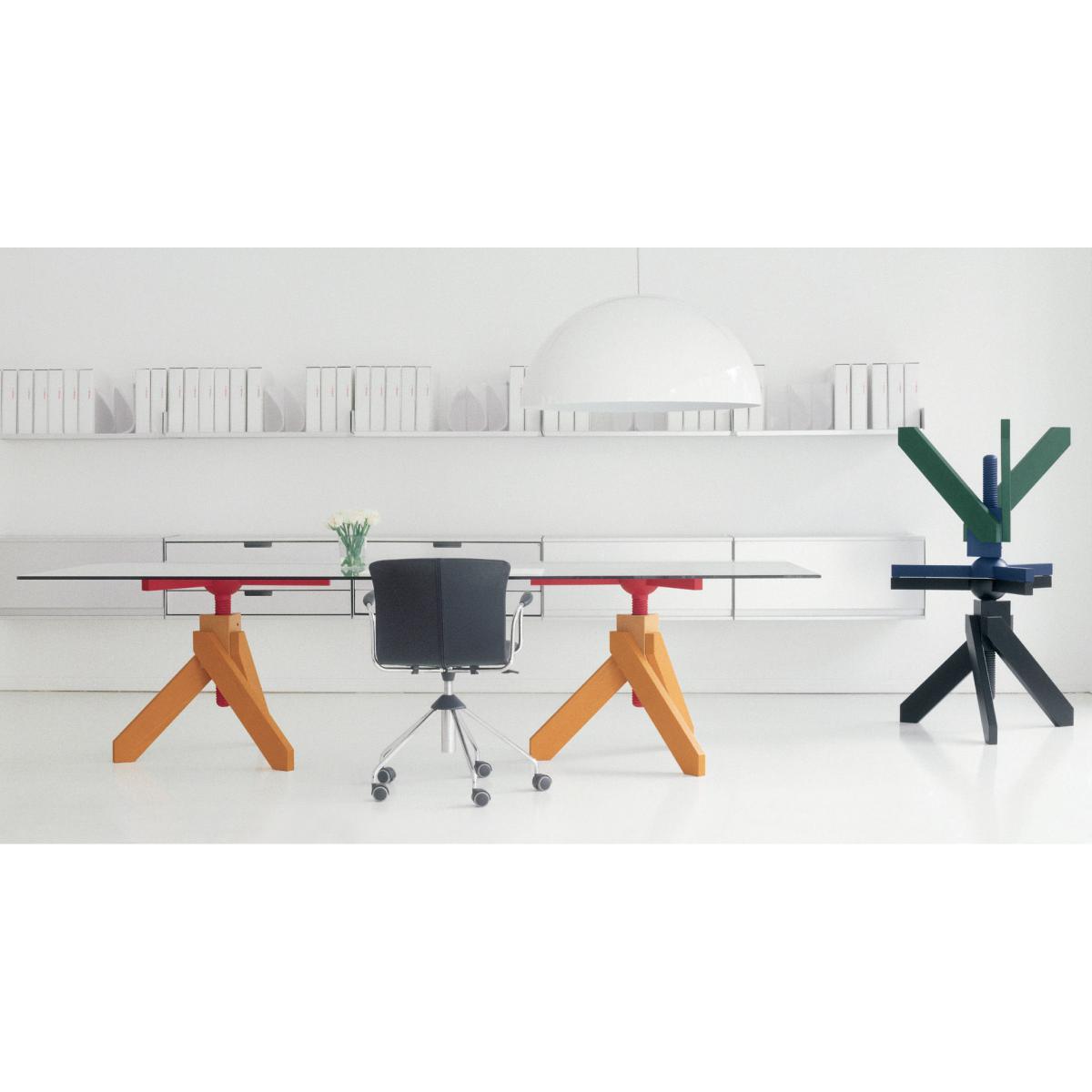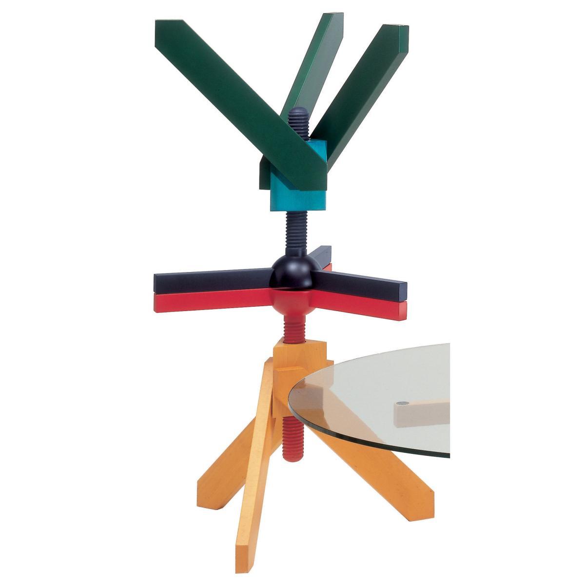 "Wood and screw are like page and ink, marble and chisel. The material and the tool that transforms it. A simple concept out of which, as always, Vico Magistretti, twenty years ago, invented a table, the first table in the De Padova collection. Vidun, meaning "screw" in the Milanese dialect, is a tribute to these little objects so useful in making, creating something else. An outsize screw made of coloured wood, playful yet refined, like all the objects that come from the hands of Pierluigi Ghianda, one of the greatest of contemporary cabinet makers. And a crystal table top, which leaves the idea bare: "Total absence of all superimposed decoration, redundant and useless", Vico Magistretti used to say. "It's always the conceptual detail that attracts people's interest". ".