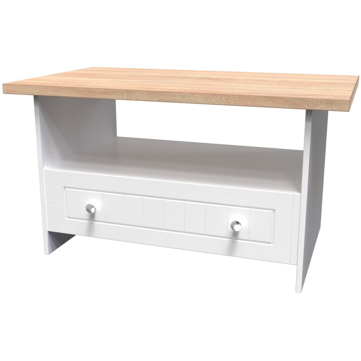 Vienna Bottom Drawer Coffee Table - Porcelain Ash & Bardolino Oak