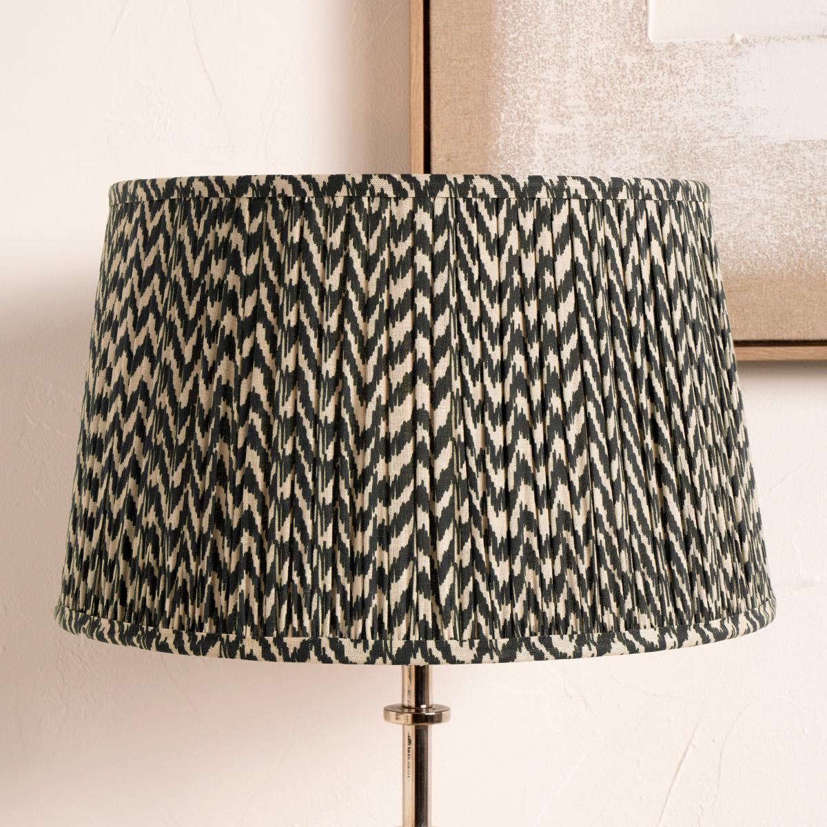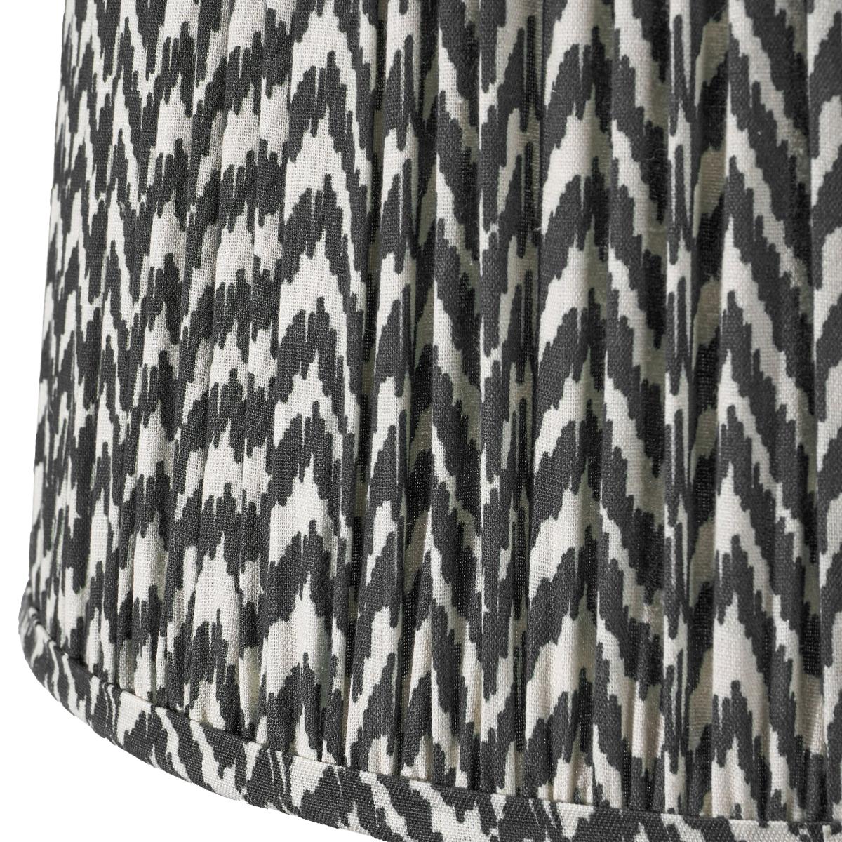 I love this shade for its versatile black chevron design, which adds a subtle graphic touch to any space. The mushroom pleat finish brings a soft texture that elevates its sophistication, making it suitable for both modern and traditional interiors. It works particularly well in eclectic, industrial, or contemporary schemes where a touch of pattern can make a statement without overpowering the overall look. Practical styling tips include pairing it with warm metallic accents or natural materials to add warmth, and placing it on statement lamps for a balanced and polished vibe. This shade is a smart choice for creating a stylish focal point while maintaining a versatile and timeless appeal.