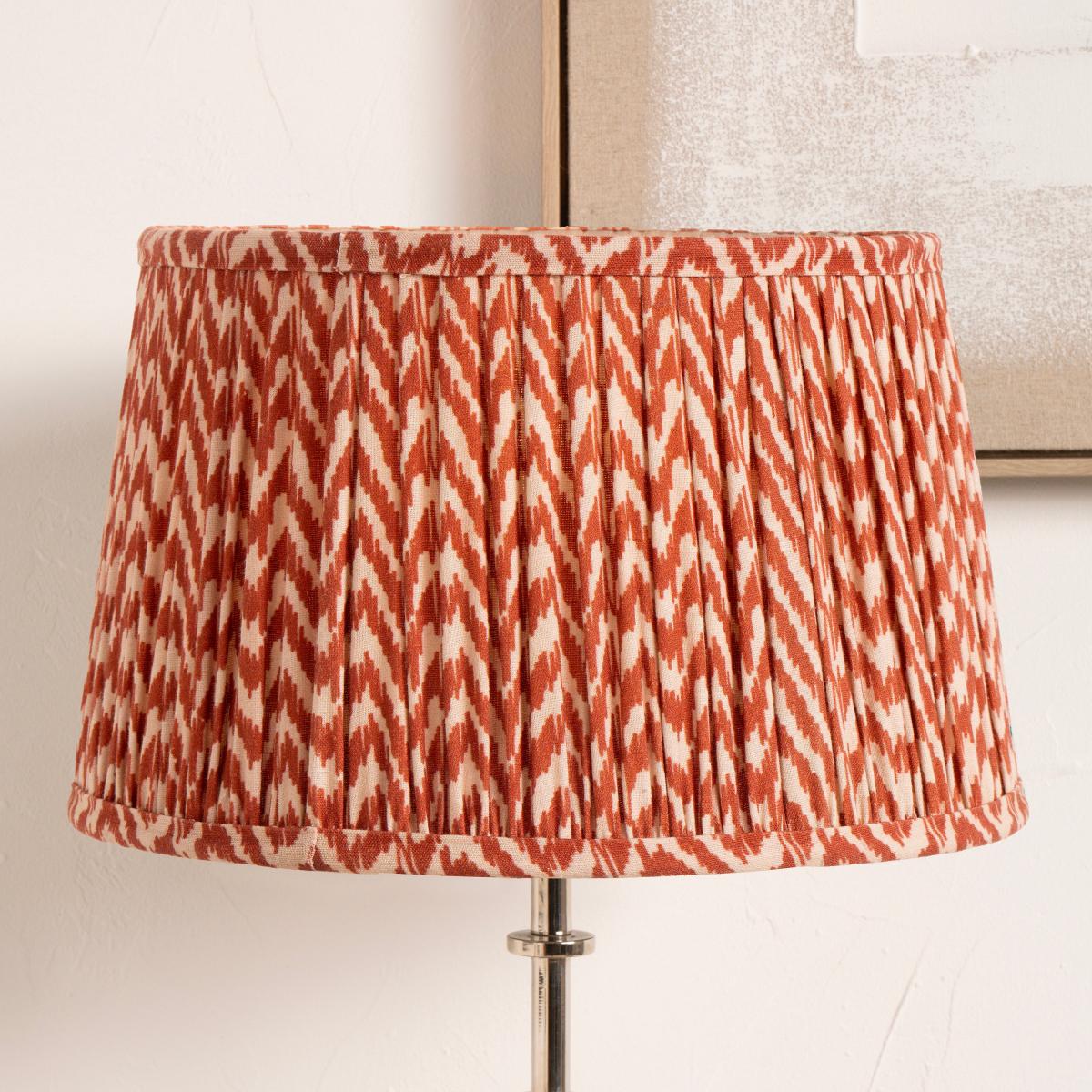I love this lamp shade’s bold chevron pattern and rich red hue-it's a real statement piece. It works particularly well in eclectic, contemporary, or retro-inspired interiors, where it can add colour and texture without overwhelming the space. For styling tips, pair it with neutral or muted furnishings to let the shade shine, or use it as a pop of colour in a more minimalist room. Its mushroom pleat design introduces a subtle textural interest, making it versatile enough for both side lamps and centrepieces. Practical advice would be to consider the scale of your lamp to ensure the shade’s proportions are balanced, and to match the surrounding decor to either complement or contrast the vibrant pattern effectively.