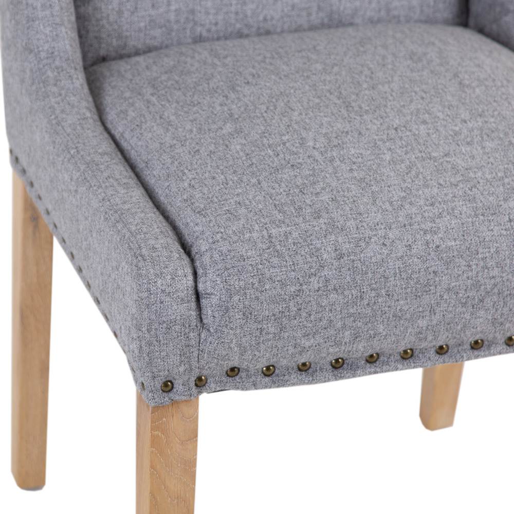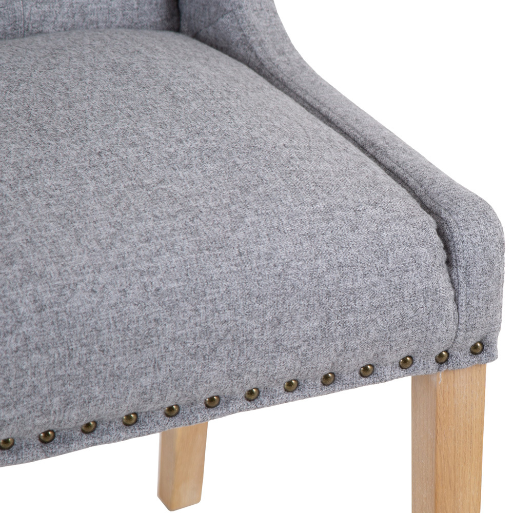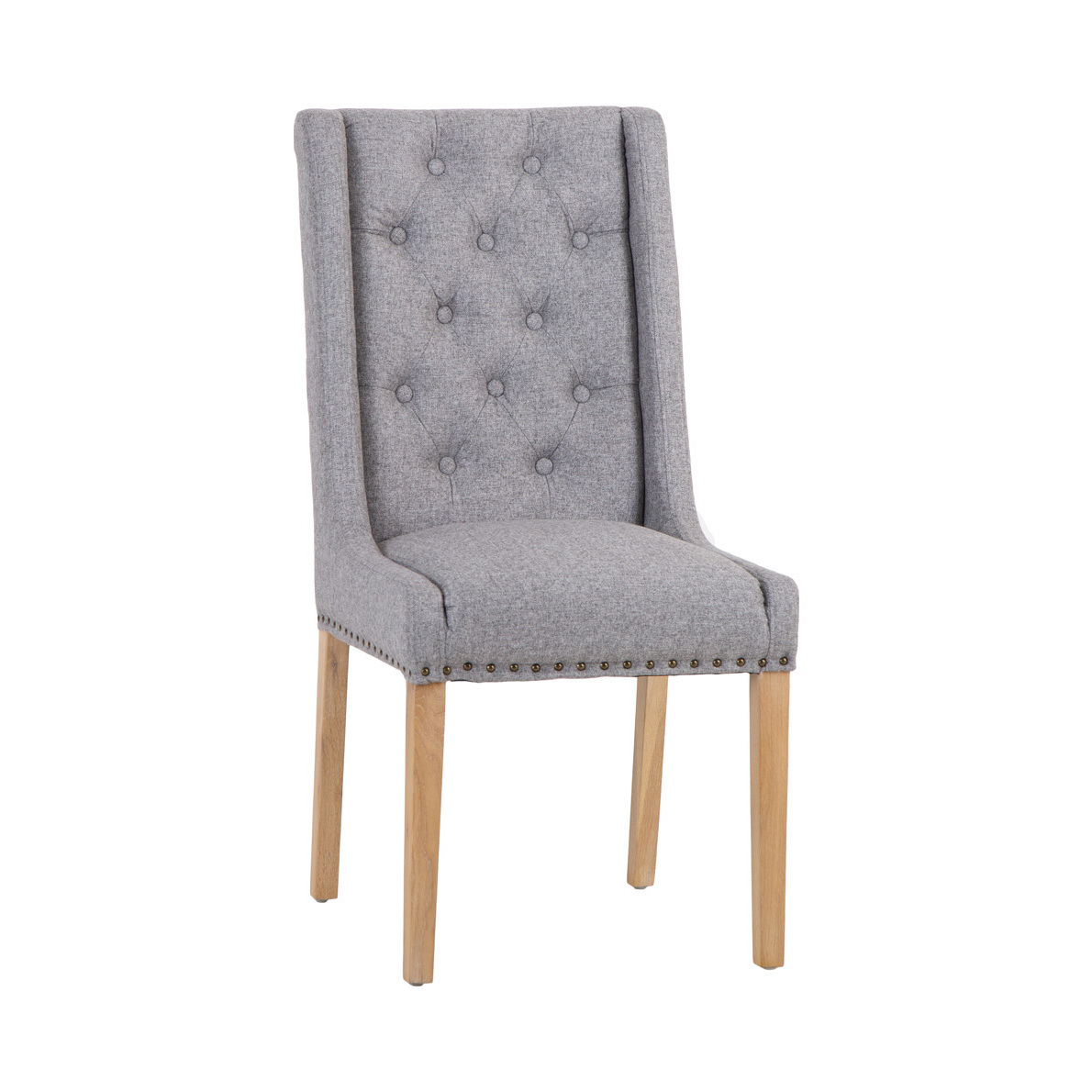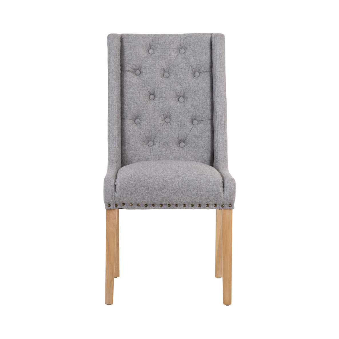 I love the Vienna chair for its versatile understated elegance and contemporary charm. The light grey upholstery with its button back detail and studded accents adds a touch of sophistication without feeling overly formal, making it adaptable to both modern and classic interiors. It works particularly well in schemes with neutral tones or soft colours, providing a stylish yet comfortable dining option. For practical styling, pairing it with a sleek wooden or glass dining table allows the chair's details to stand out, while adding colourful or textured cushions can bring in extra personality and comfort if desired. Its elegant silhouette and neutral hue make it a great staple piece that can transition easily through different decor updates.