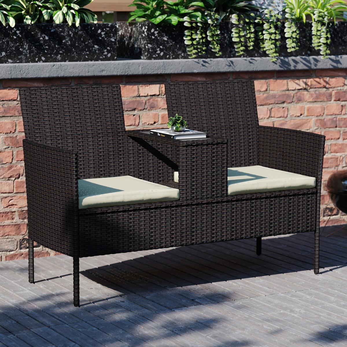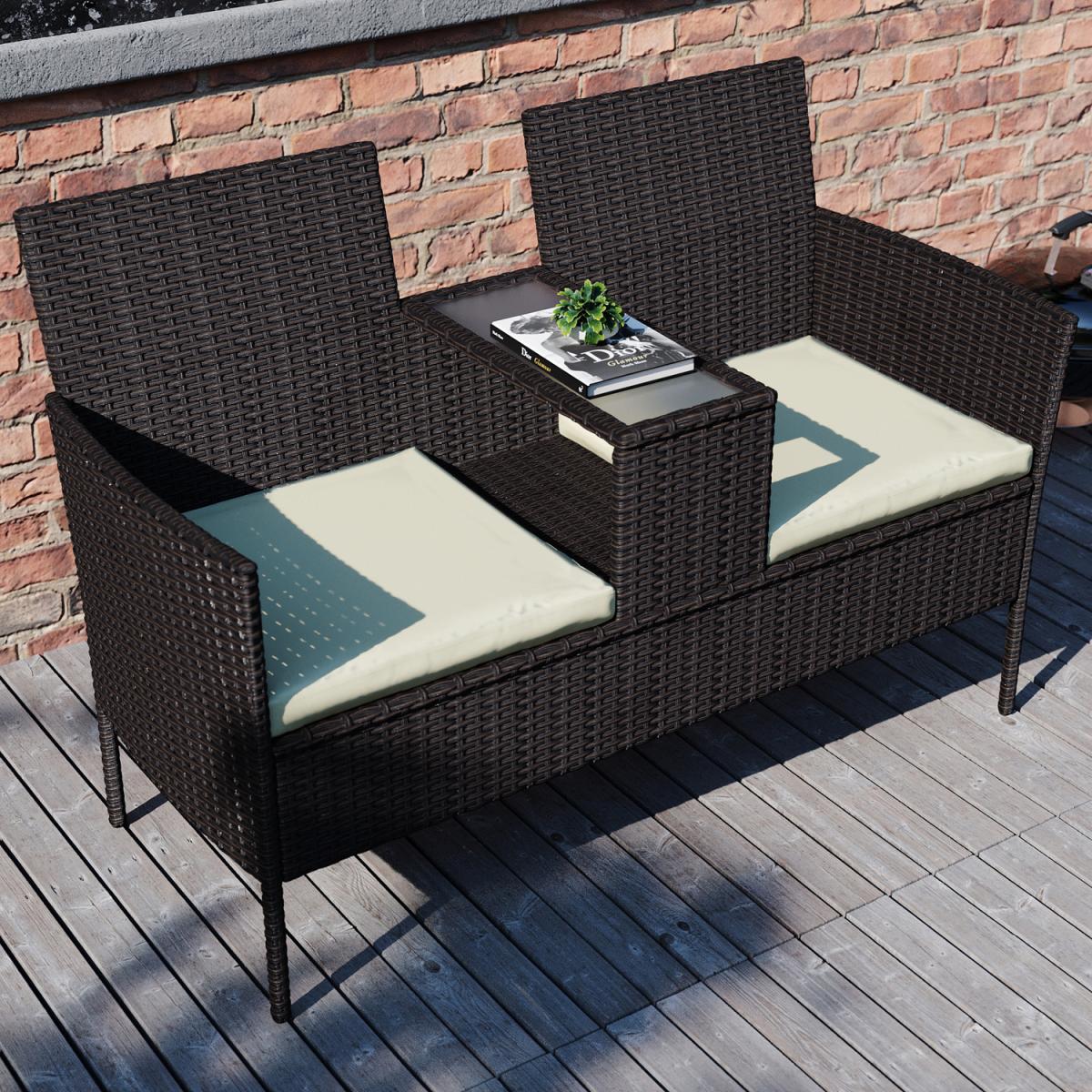 Vienna Love Seat Rattan Garden Furniture Set - Brown