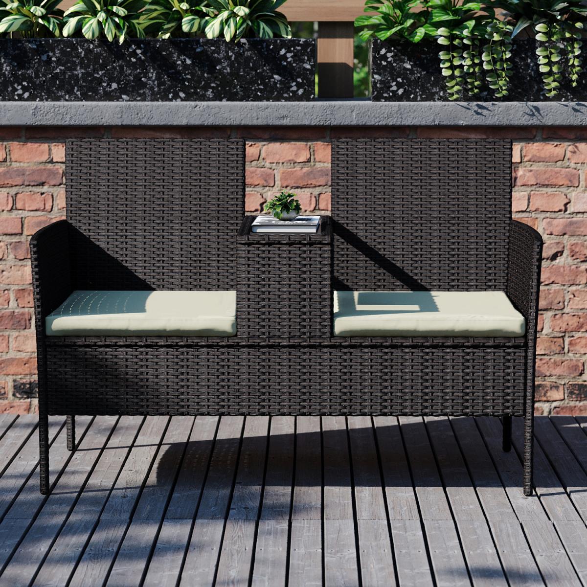 Your garden is in need of this gorgeous Vienna Love Seat. Perfect to be shared with the loved one to enjoy sunny days outside. Moreover, thanks to a built-in table with glass top you can share a romantic homemade meal, too! Cosy cushions included.
