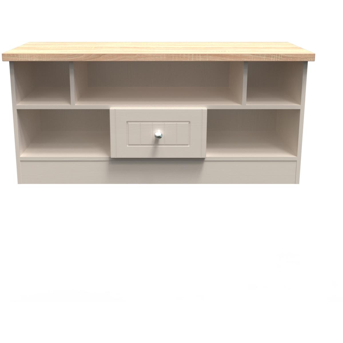 This low level TV Corner unit features plenty of open shelving and a central storage drawer and will support a flat screen TV of up to 50". The classic, elegant Vienna range is available in a variety of painted wood finishes with natural wood effect tops and stylish chrome handles on all doors and drawers. This range boasts a classic and traditional design which will compliment a variety of traditional home dors.. All our furniture is made in the United Kingdom, to the highest quality. It is delivered direct to your location of choice by one of our two man delivery teams, and come full assembled (although legs may be removed to prevent damage in transit).