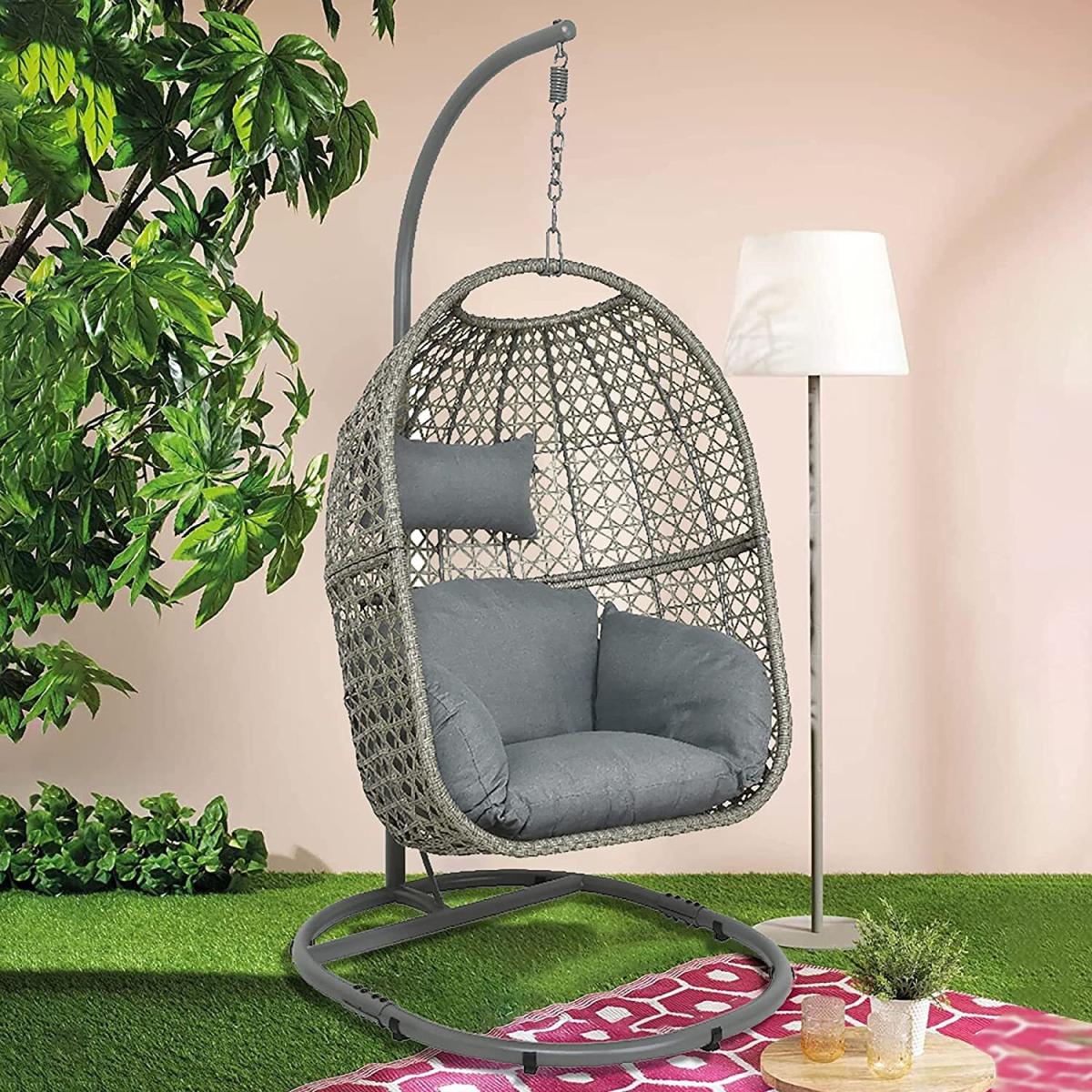 The hanging egg chair is padded out with a moveable head and seating cushion, giving you perfect room to really lay back and relax in the swing chair. The hanging seating basket, when hung up, is the ideal height to get in and out of, making using the chair a pleasure.