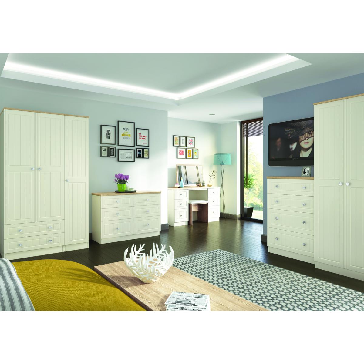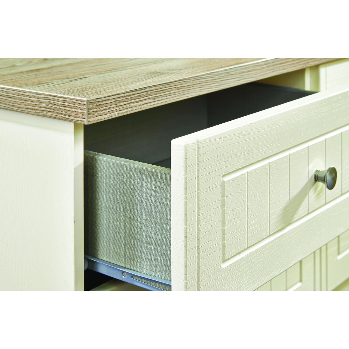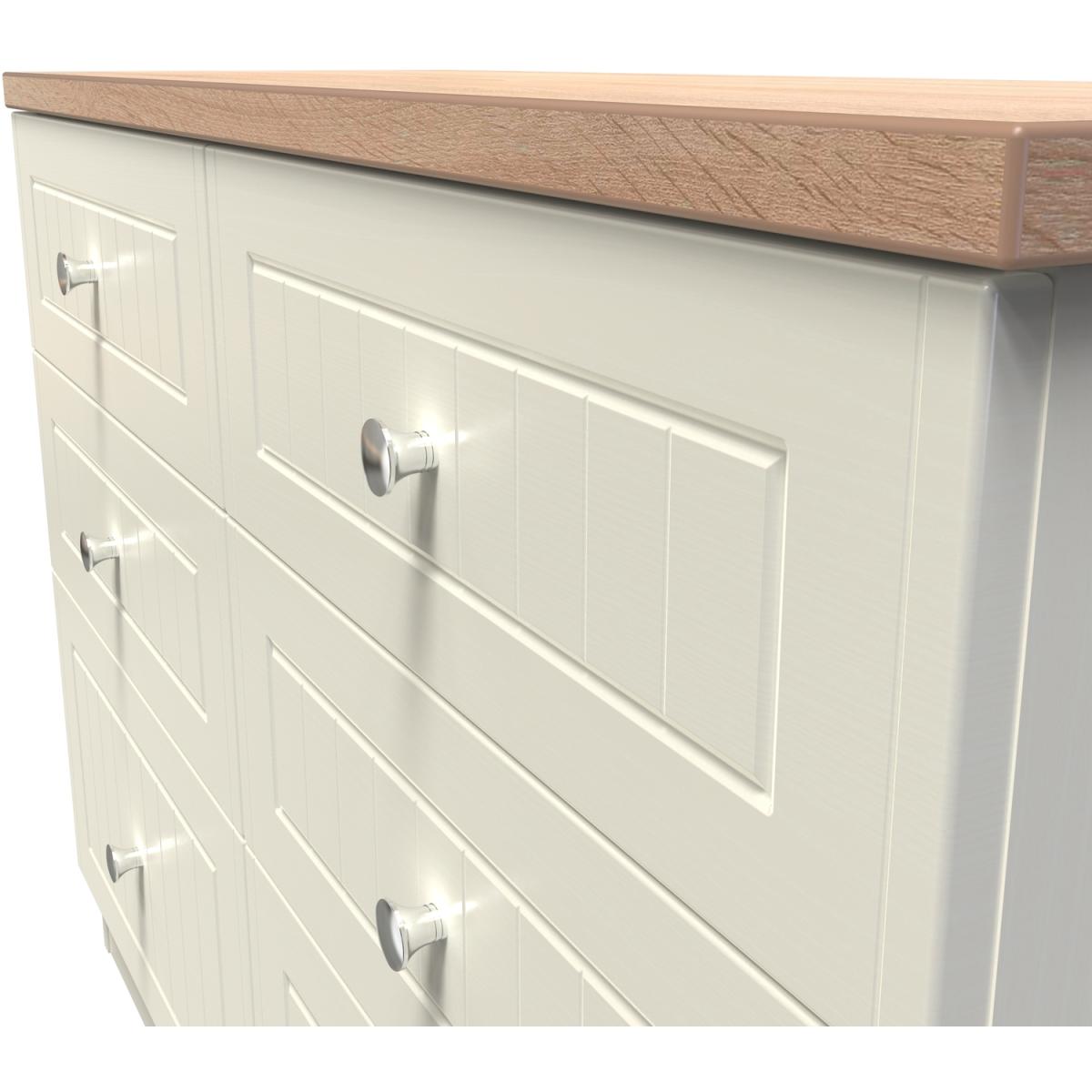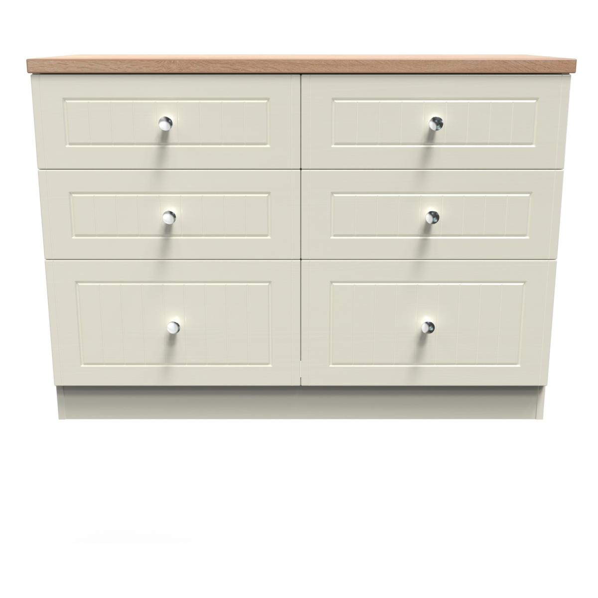 This double width 6 drawer chest of drawers is practical and stylish. Perfect for any home as a free standing storage unit. The classic, elegant Vienna range is available in a variety of painted wood finishes with natural wood effect tops and stylish chrome handles on all doors and drawers. This range boasts a classic and traditional design which will compliment a variety of traditional home dors.. All our furniture is made in the United Kingdom, to the highest quality. It is delivered direct to your location of choice by one of our two man delivery teams, and come full assembled (although legs may be removed to prevent damage in transit).