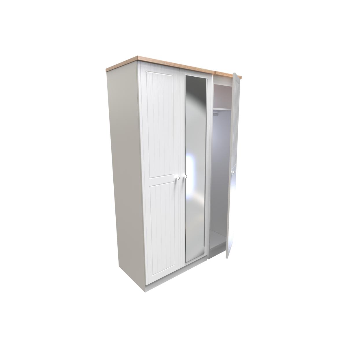 This full height triple 3 door wardrobe is perfect for any bedroom when a normal wardrobe is just not large enough. Also features a full height single mirrored door. The classic, elegant Vienna range is available in a variety of painted wood finishes with natural wood effect tops and stylish chrome handles on all doors and drawers. This range boasts a classic and traditional design which will compliment a variety of traditional home dcors. All our furniture is made in the United Kingdom, to the highest quality. It is delivered direct to your location of choice by one of our two man delivery teams, and comes fully assembled (although legs may be removed to prevent damage in transit).